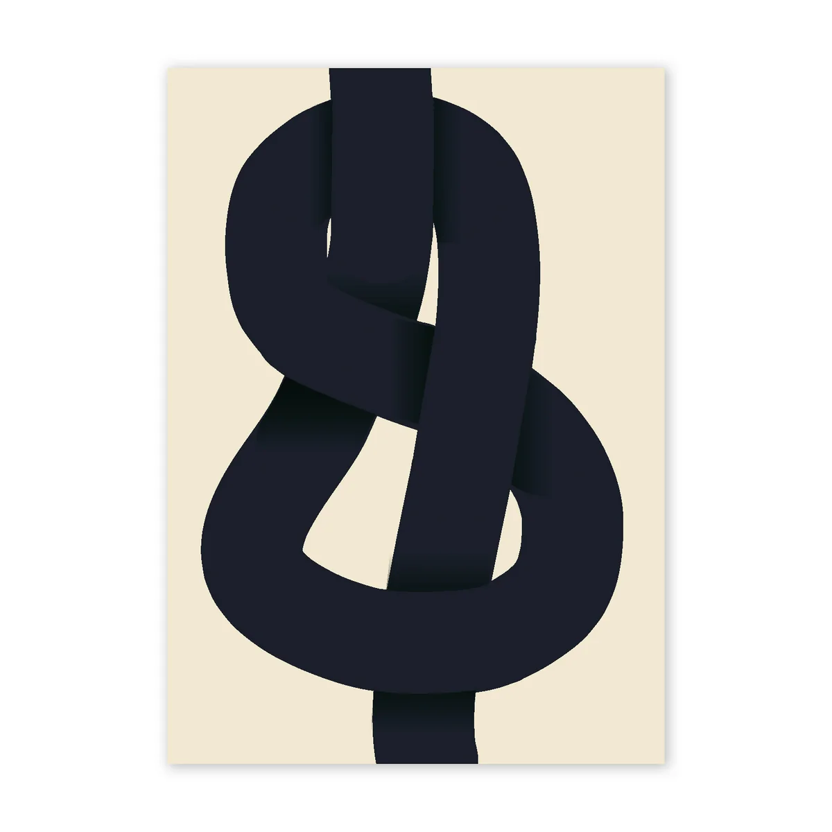 Das Poster The Knot der dänischen Designern Nina Bruun zeigt eine fließende, breite, verknotete Linien in Form eines Grafikdrucks. Das Spiel mit Schatten versucht den Eindruck von Tiefe zu vermitteln, wodurch das Motiv besonders lebendig wirkt. Das tiefe Blau der verknoteten Linie schafft zudem einen starken, dramatischen Kontrast zu dem beigen Hintergrund.