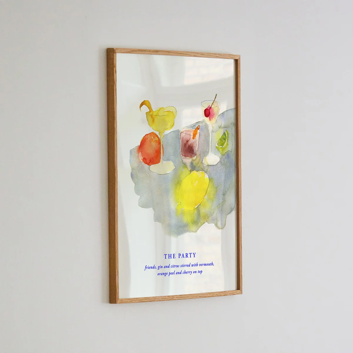 Das The Party Poster ist Teil der von All The Way To Paris gestalteten Serie A Year of Greens (2026), die über das Jahr hinweg Gartenfunde und Alltagsszenen in Aquarell und Bleistift festhält. Dieses Motiv bildet den stimmungsvollen Ausklang der Reihe – eine gesellige Szene rund um ein gut gemixtes Getränk, voller Farbigkeit, Bewegung und subtiler Symbolik. Es lädt dazu ein, das Jahr mit Freude und Gemeinschaft zu feiern – und bringt genau diese Atmosphäre in Küche, Wohnbereich oder kreative Räume.