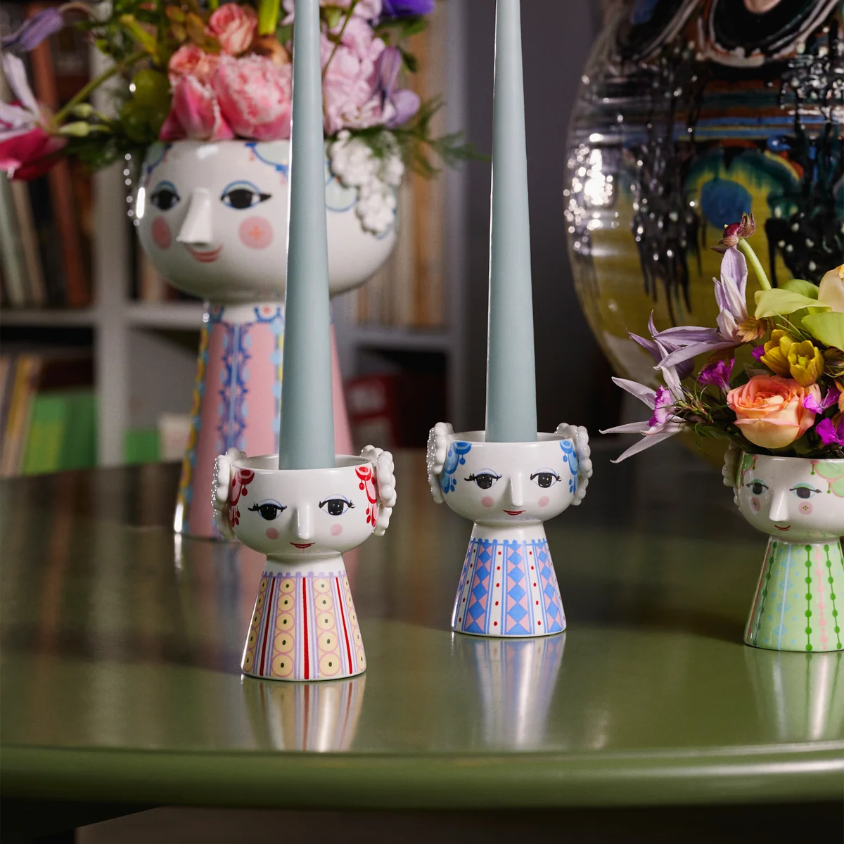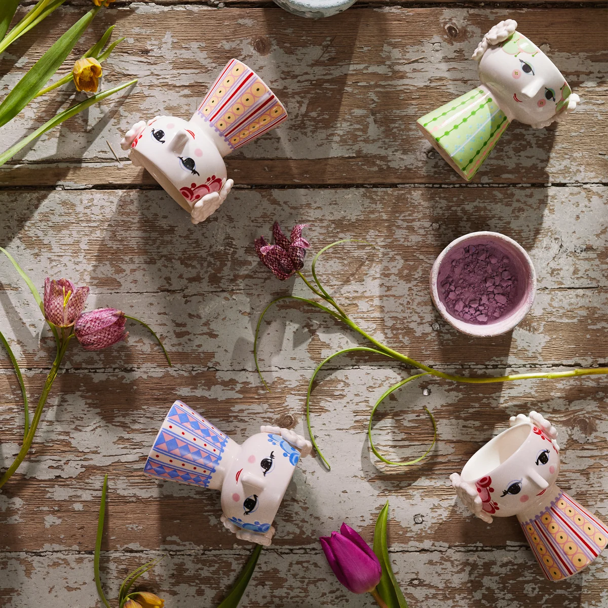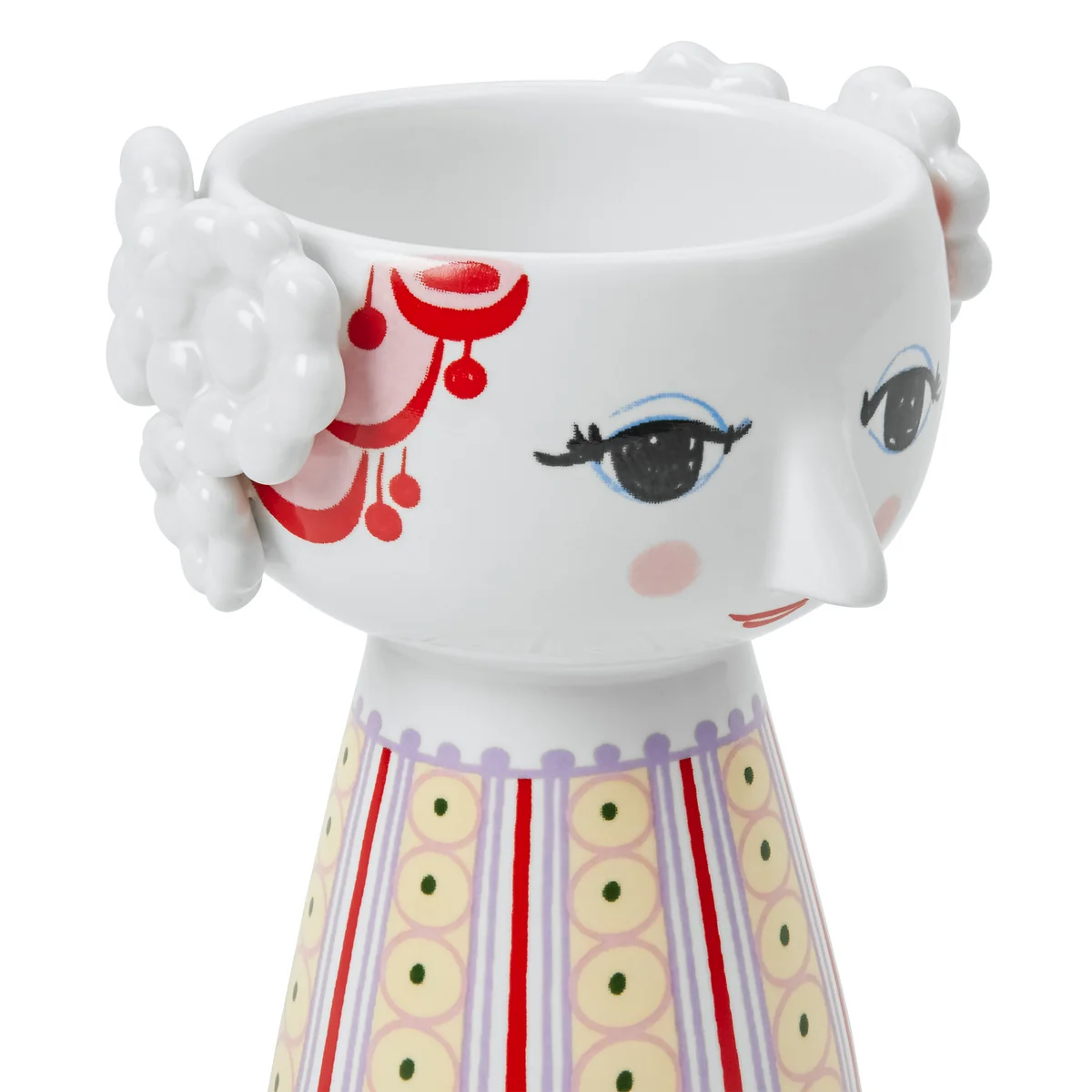 Die Gestaltung spiegelt den unverkennbaren, kreativen Stil des dänischen Design-Urgesteins Bjørn Wiinblad wieder: Liebevoll gestaltete Augen, niedliche Nasen und große, geschnörkelte Gesichter.