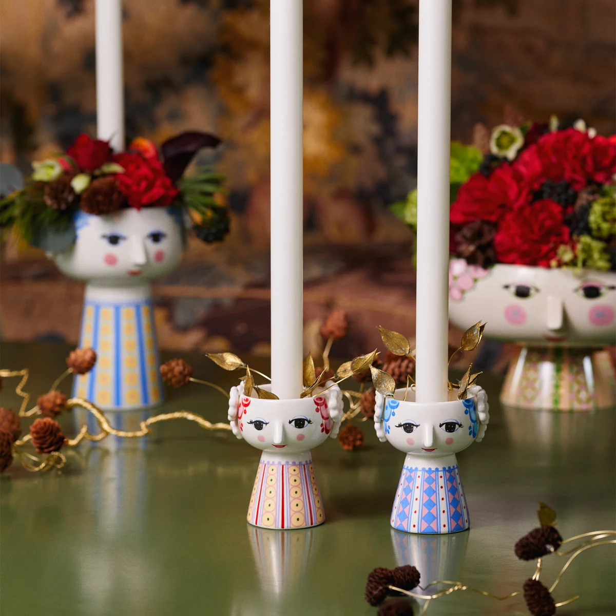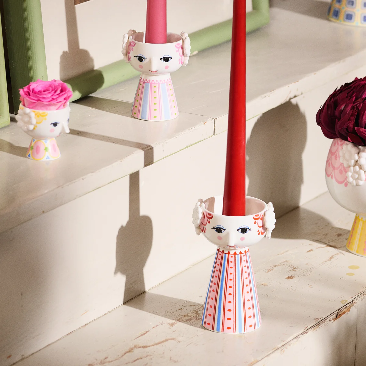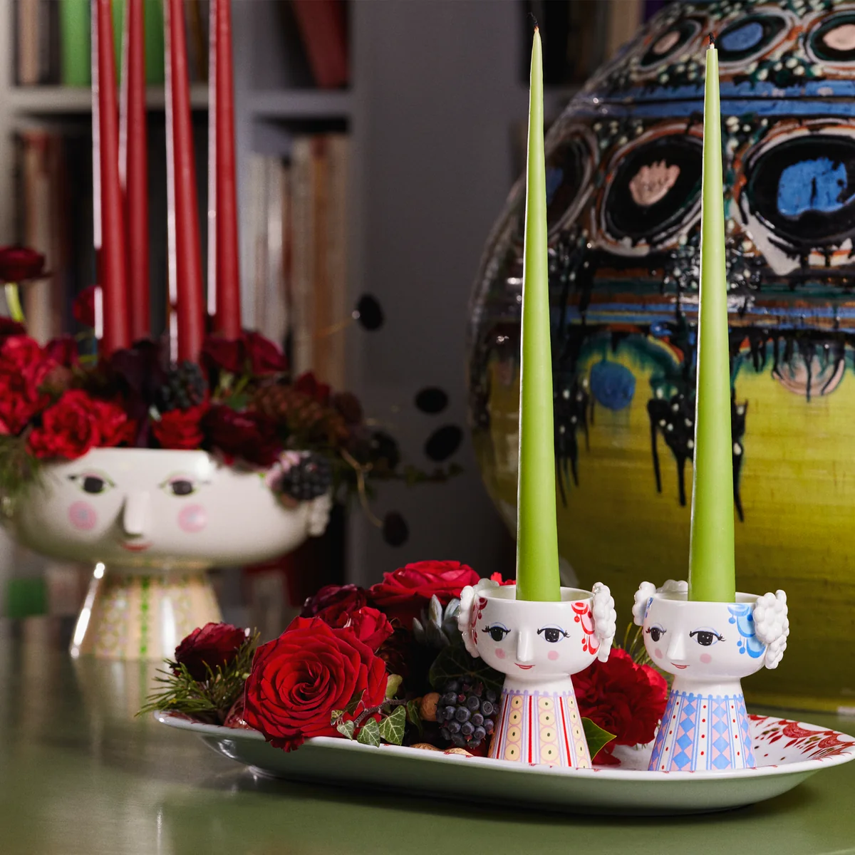 Die Gestaltung spiegelt den unverkennbaren, kreativen Stil des dänischen Design-Urgesteins Bjørn Wiinblad wieder: Liebevoll gestaltete Augen, niedliche Nasen und große, geschnörkelte Gesichter.