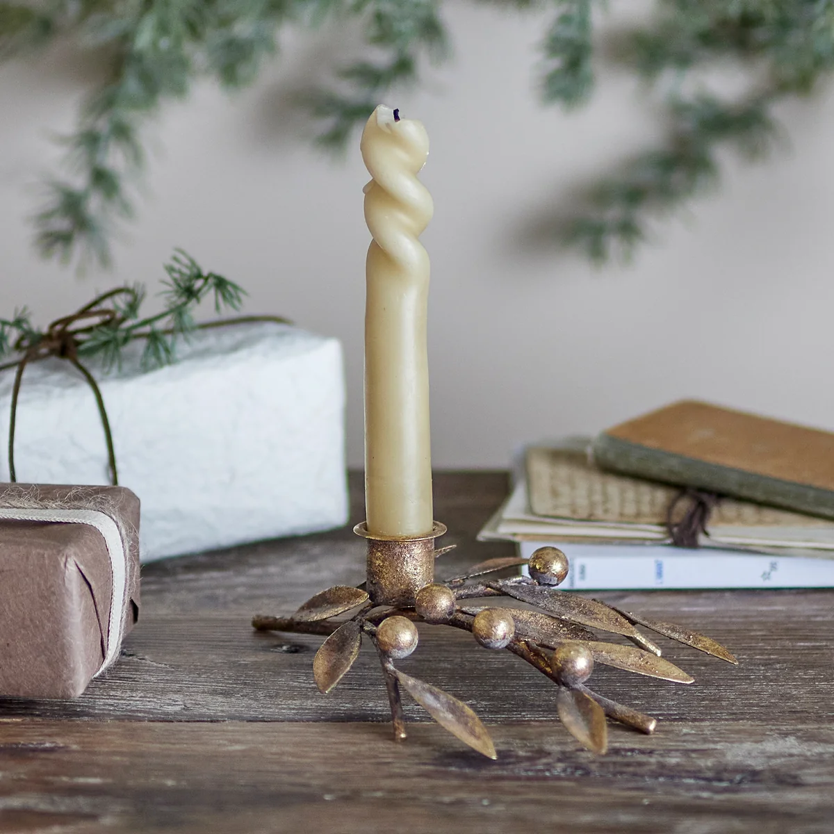 - Dekorativer Kerzenständer mit Mistelzweig-Motiv