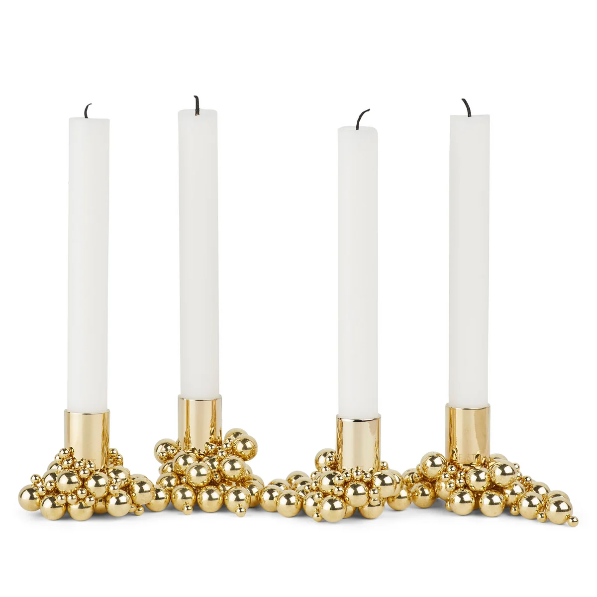 Verwendet werden kann der Kerzenhalter als Herzstück auf dem Tisch oder auf der Fensterbank. Kombiniert man mehrere Kerzenhalter, so lässt sich ein traditioneller Adventskranz kreieren. Für mehr Extravaganz kann das Kerzenrohr auf die Kugeln gelegt werden, als würde es über einer Ansammlung von Molekülen schweben. Ebenfalls interessant wirkt es, wenn einige der Stahlkugeln unter eine dünnen Tisch gepinnt werden und so die Wahrnehmung der Schwerkraft getäuscht wird.