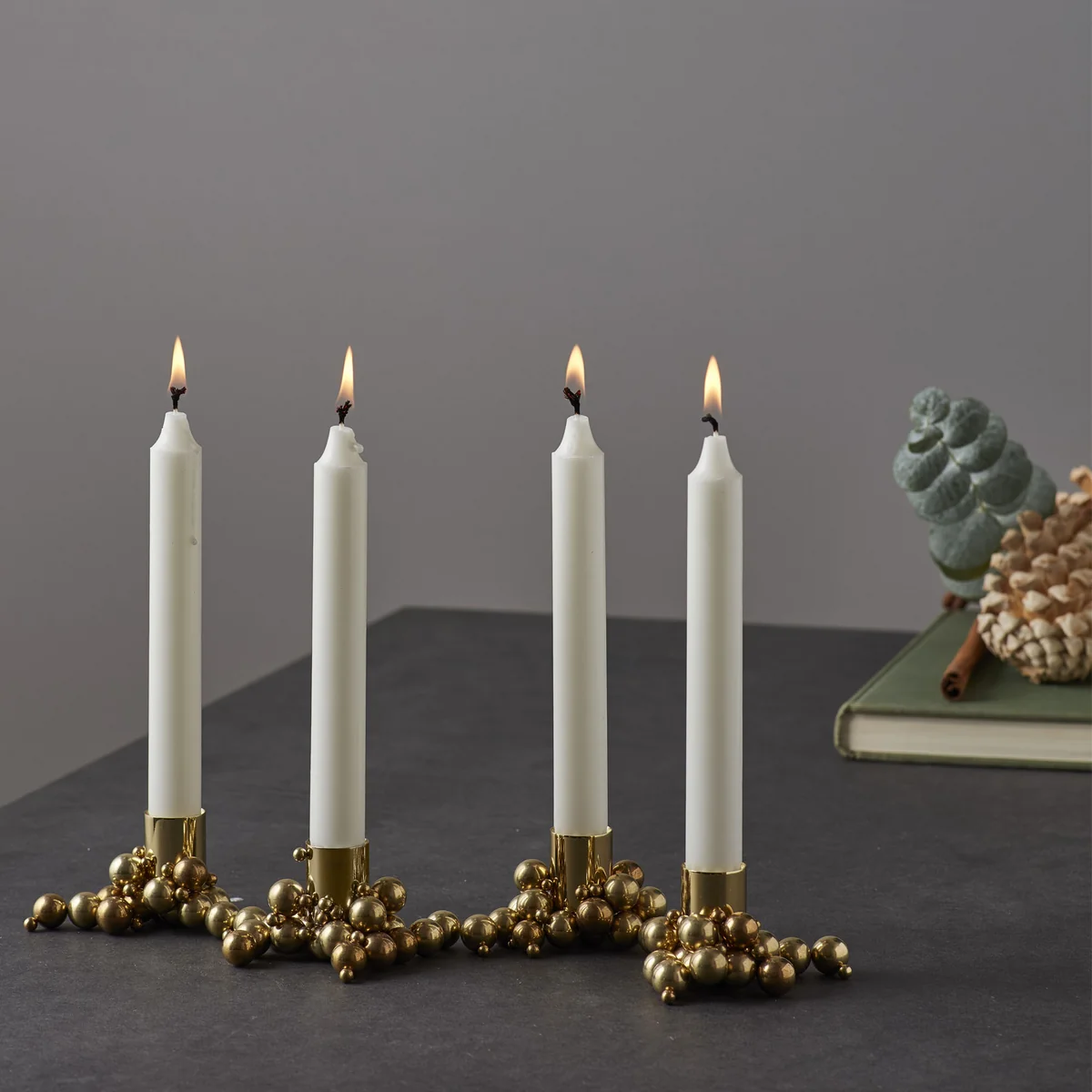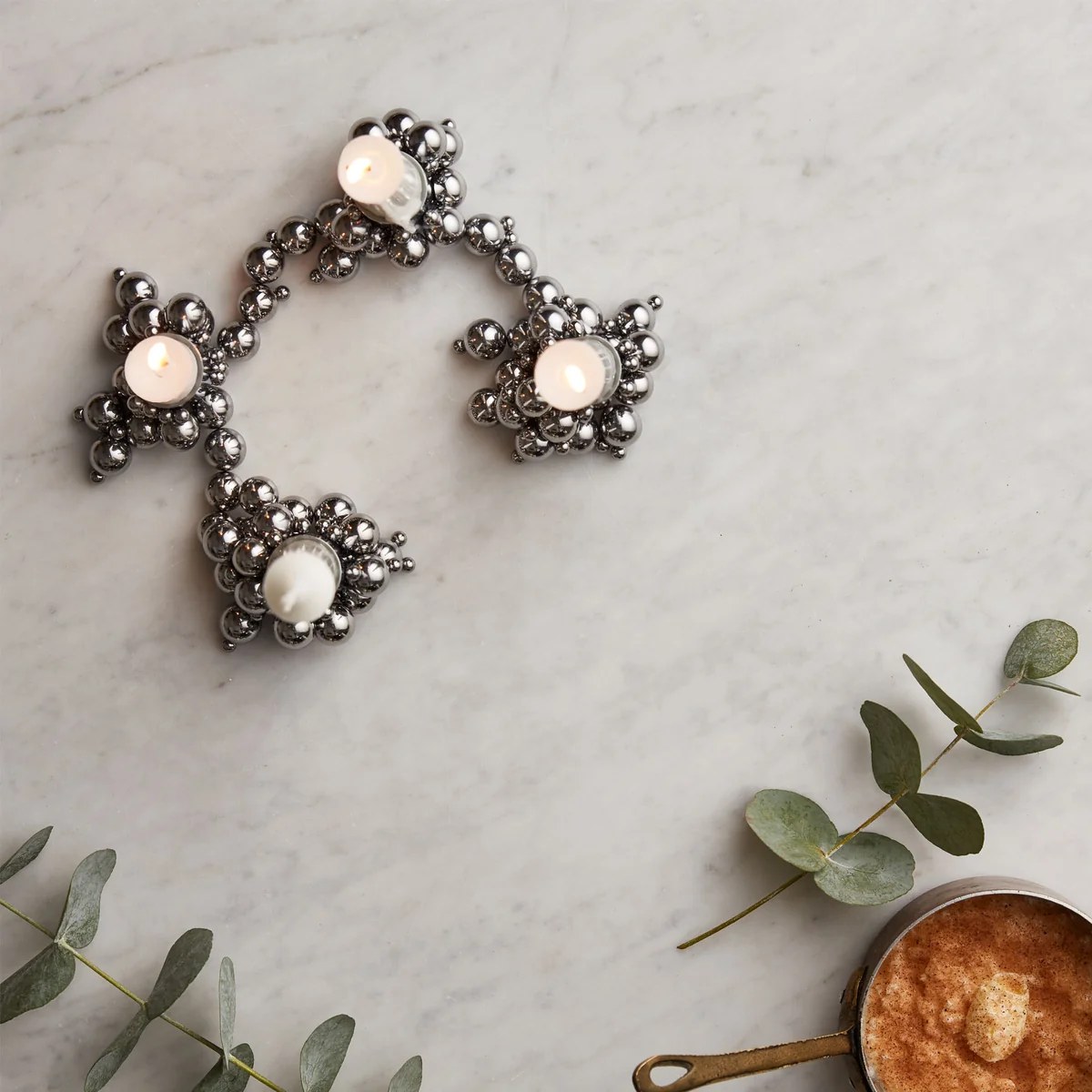 Jeder Kerzenhalter wird mit 20 großen und 20 kleinen Stahlkugeln geliefert. Dank der unendlichen Möglichkeiten, die Kugeln individuell anzuordnen, gleicht kein Molekyl Kerzenhalter dem anderen.