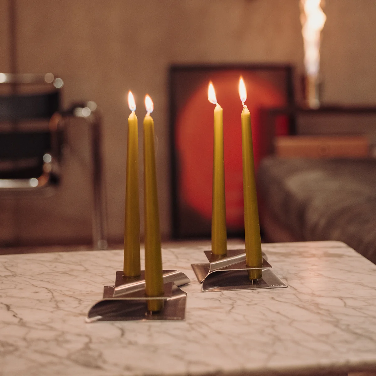 Die Square Candle Kerzenhalter von höfats überzeugen durch ihr schlichtes Design und die zugleich innovative Form. Hergestellt werden die Kerzenhalter aus Edelstahl. Sie eignen sich für herrkömmliche Stabkerzen (Ø 20 - 24 cm) und sind in verschiedenen Farben einzeln oder im Set erhältlich.