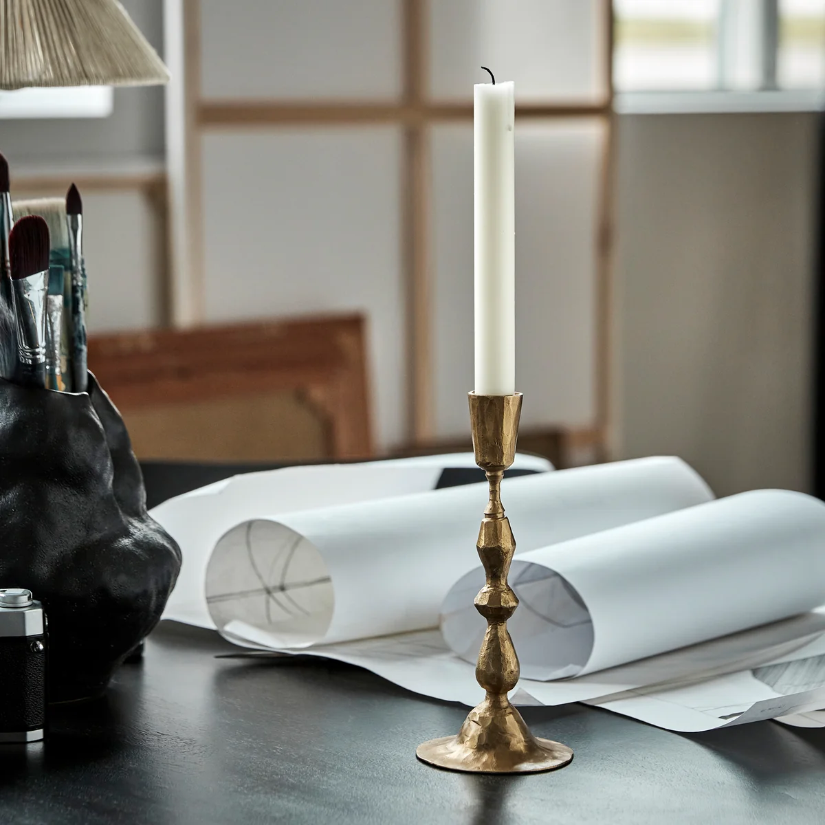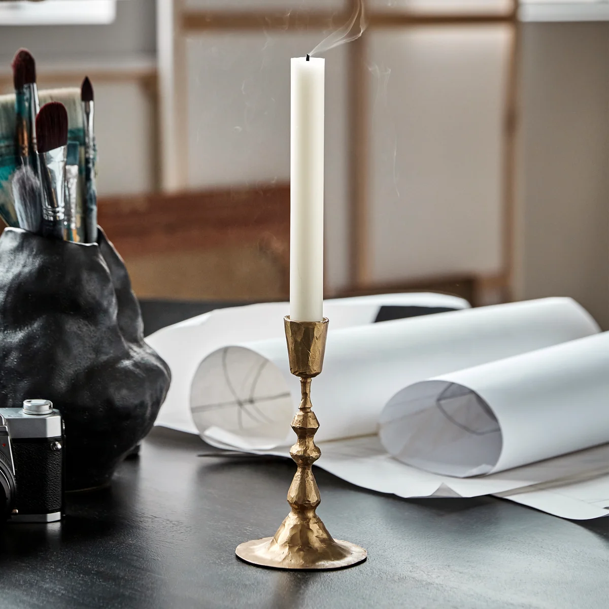 Der Don Kerzenständer von House Doctor verbindet handgefertigtes Eisen mit einer eleganten antik-goldenen Oberfläche, die eine entspannte Eleganz ausstrahlt. Dieser Kerzenhalter passt perfekt zu jeder Art von Einrichtung und Anlass und lässt sich wunderbar mit anderen Kerzenhaltern kombinieren oder mit einer kürzeren Version aus derselben Serie zu einer harmonischen und zugleich auffälligen Dekoration arrangieren. Geeignet für Kerzen mit einem Durchmesser von 2,2 cm, bringt der Don Kerzenständer stilvolle Akzente in Ihr Zuhause.