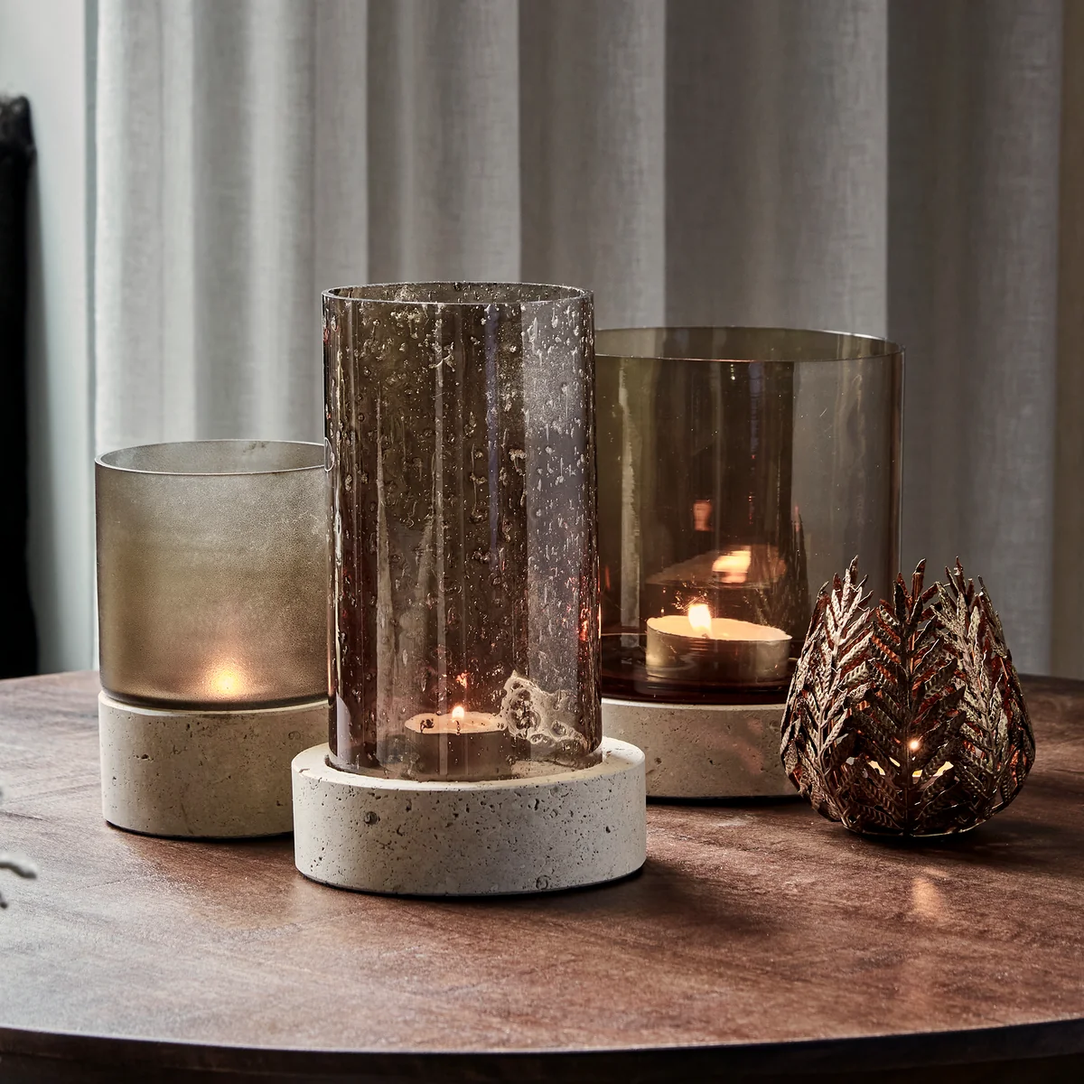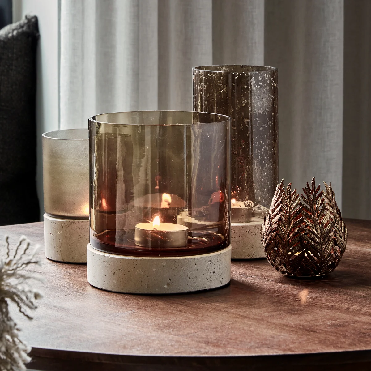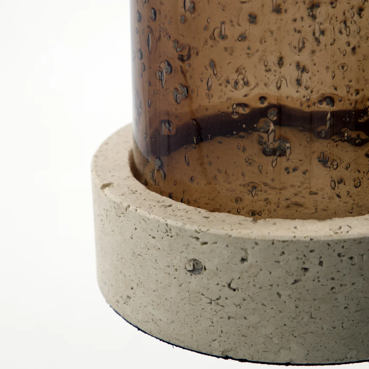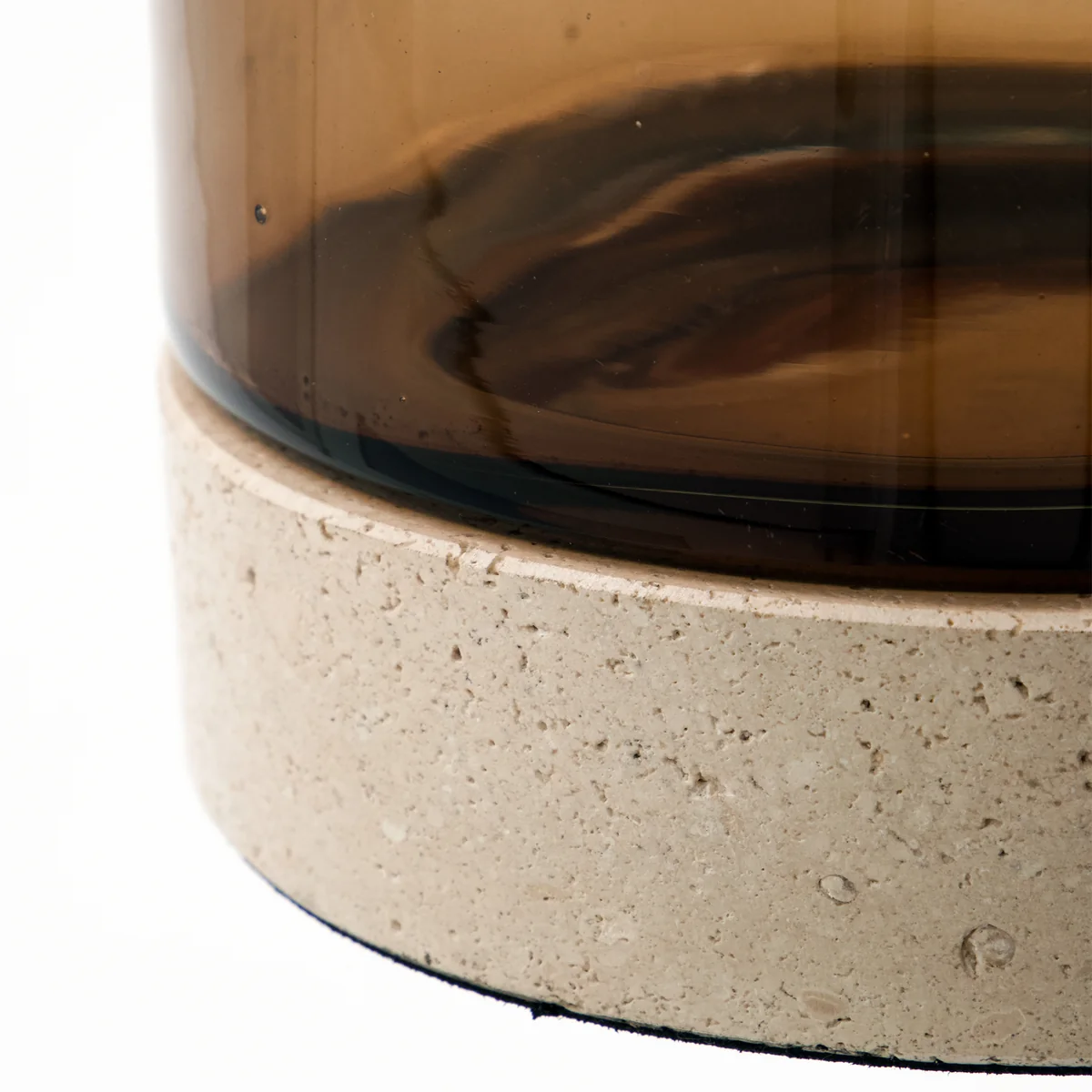 Kerzenständer aus Glas und Travertin