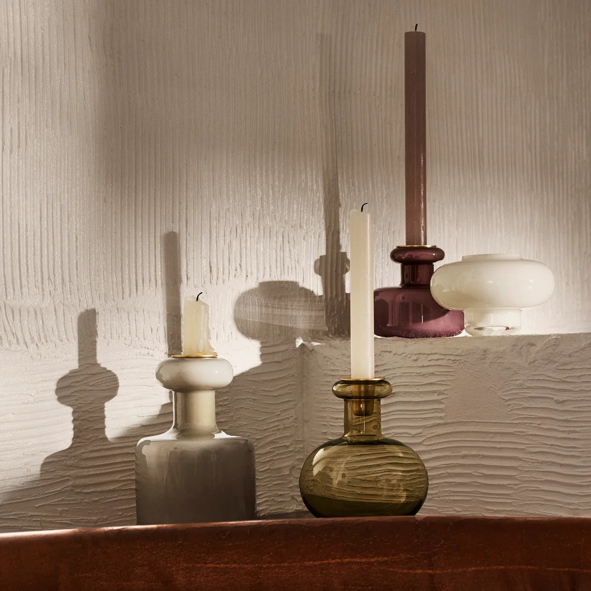 Der aus mundgeblasenem Glas hergestellte Kerzenhalter eignet sich hervorragend für Teelichter und sieht besonders schön im Ensemble aus. Daher ist er auch in mehreren Farben erhältlich.