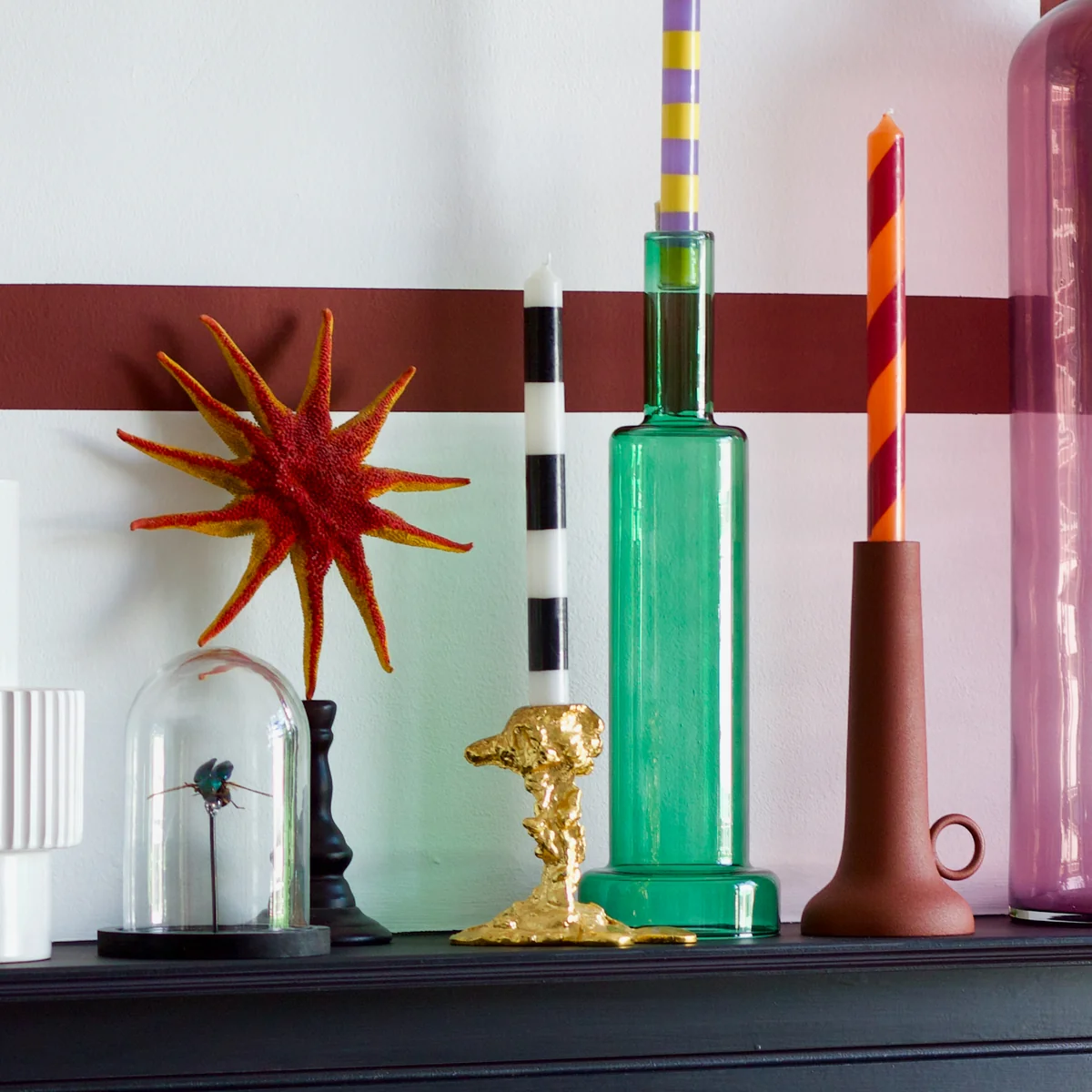 Der Drip Kerzenständer von POLSPOTTEN ist ein auffälliger und zeitgemäßer Kerzenhalter, der künstlerisches Design mit funktionaler Eleganz verbindet. Auch hochwertigen Materialien gefertigt, strahlt der Kerzenhalter ein Gefühl von Raffinesse und Handwerkskunst aus. Sein schlankes und modernes Design schafft eine visuell fesselnde und dynamische Ästhetik. Der Kerzenhalter bietet eine einzigartige Präsentationsfläche für die liebsten Kerzen und verleiht jedem Wohnraum einen warmen und einladenden Glanz.