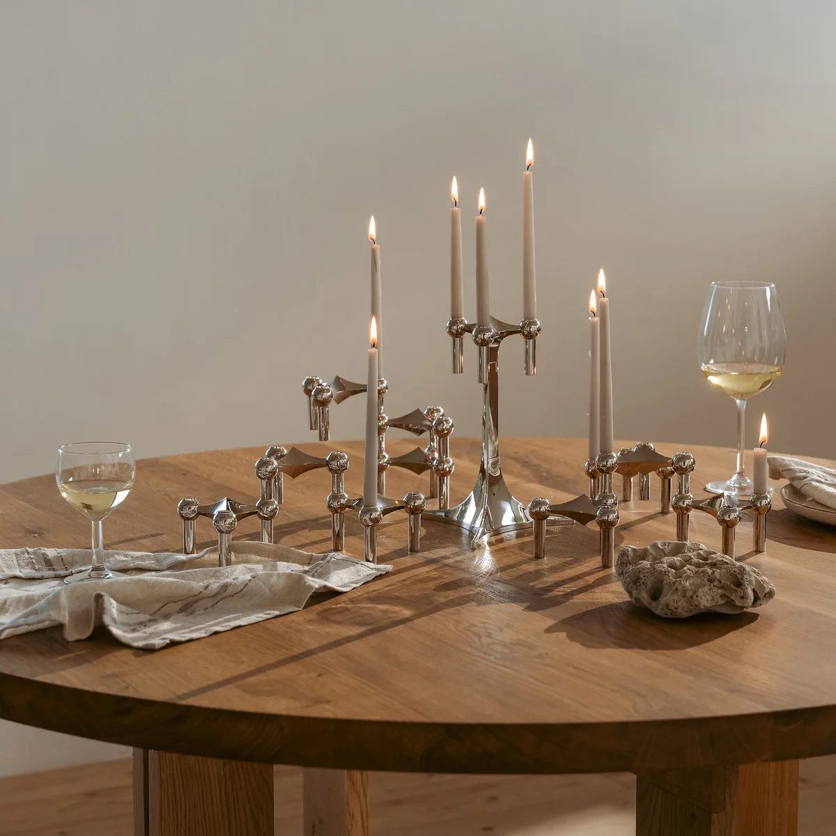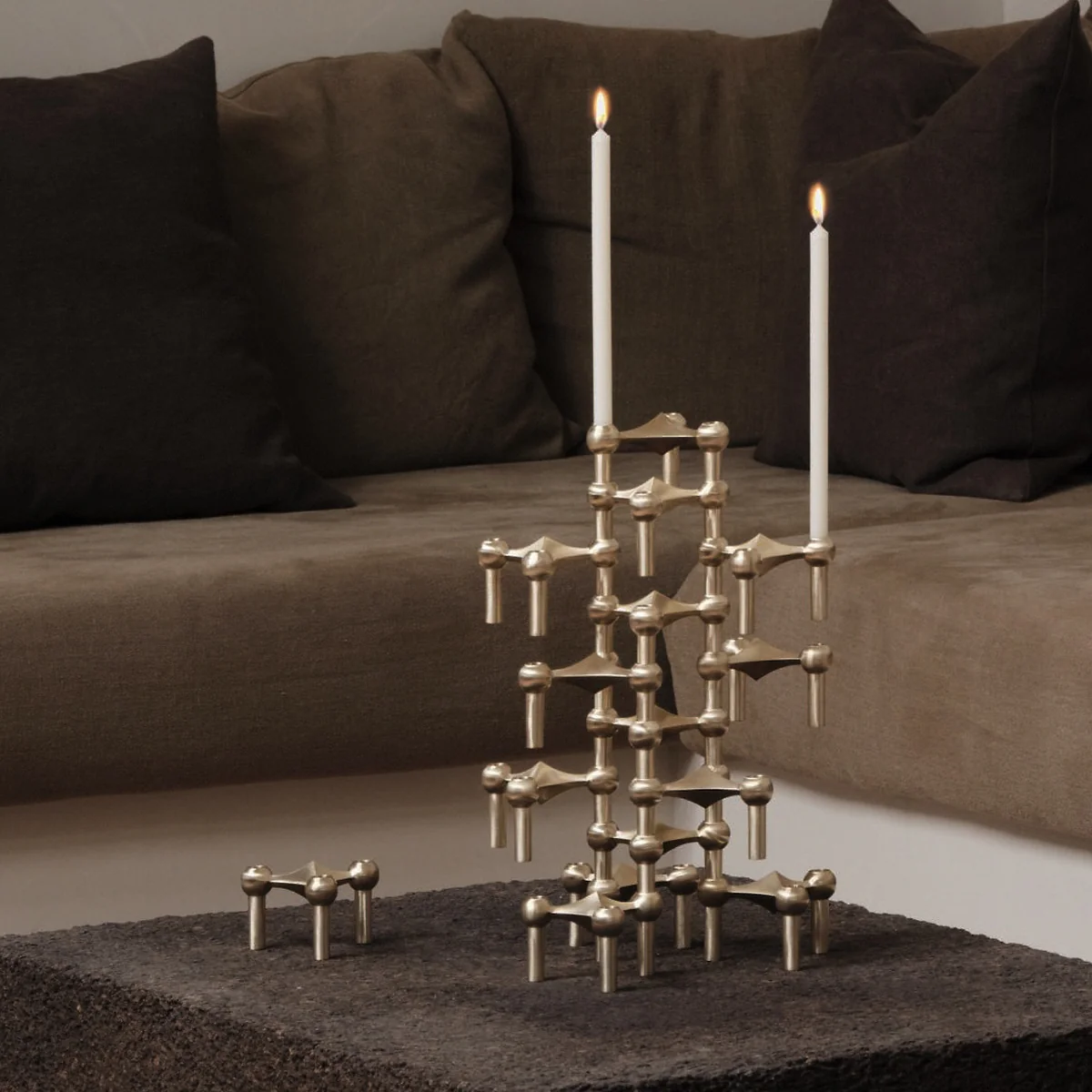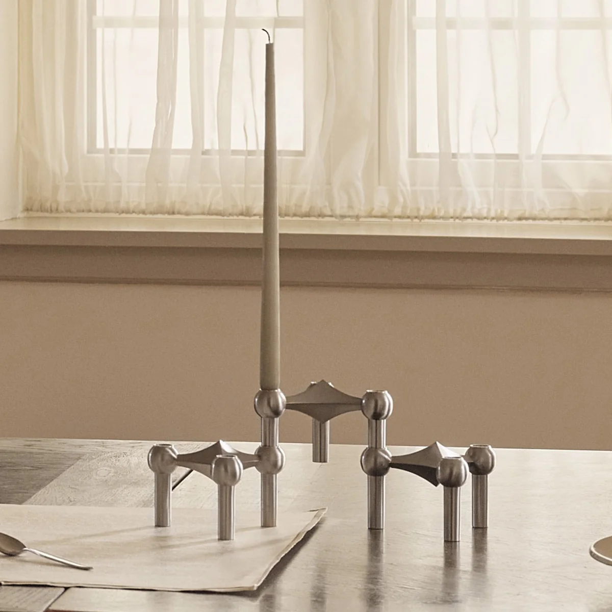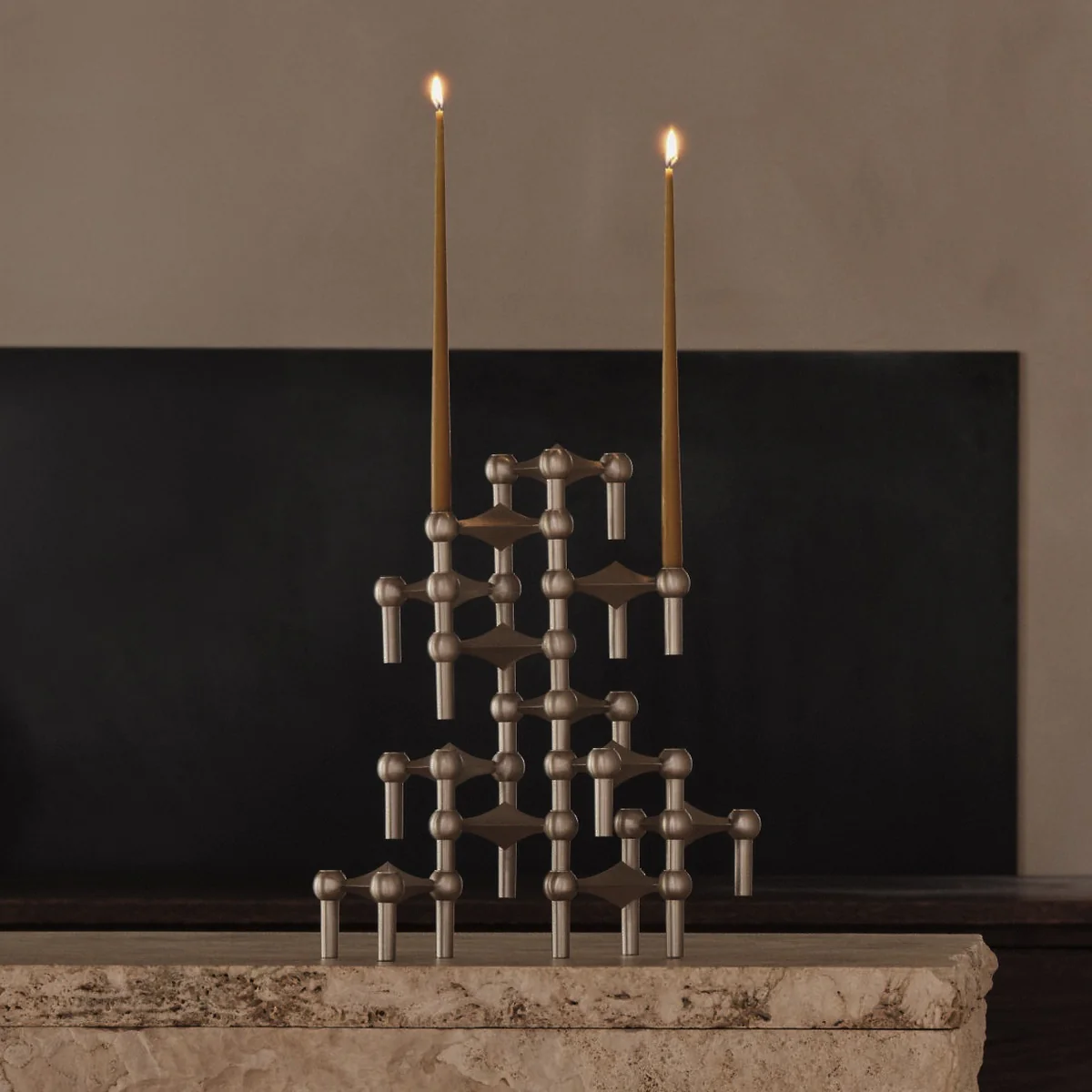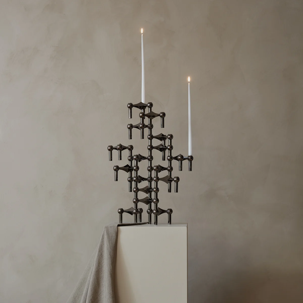 Der klassische Stoff Nagel Kerzenhalter ist eine Design-Ikone aus den 60er Jahren. Der stapelbare Kerzenhalter aus Messing, Chrom oder in mattem Schwarz wird nach Original-Entwürfen gefertigt und begeistert mit seinem zeitlosen Design und seiner unglaublichen Vielfältigkeit.