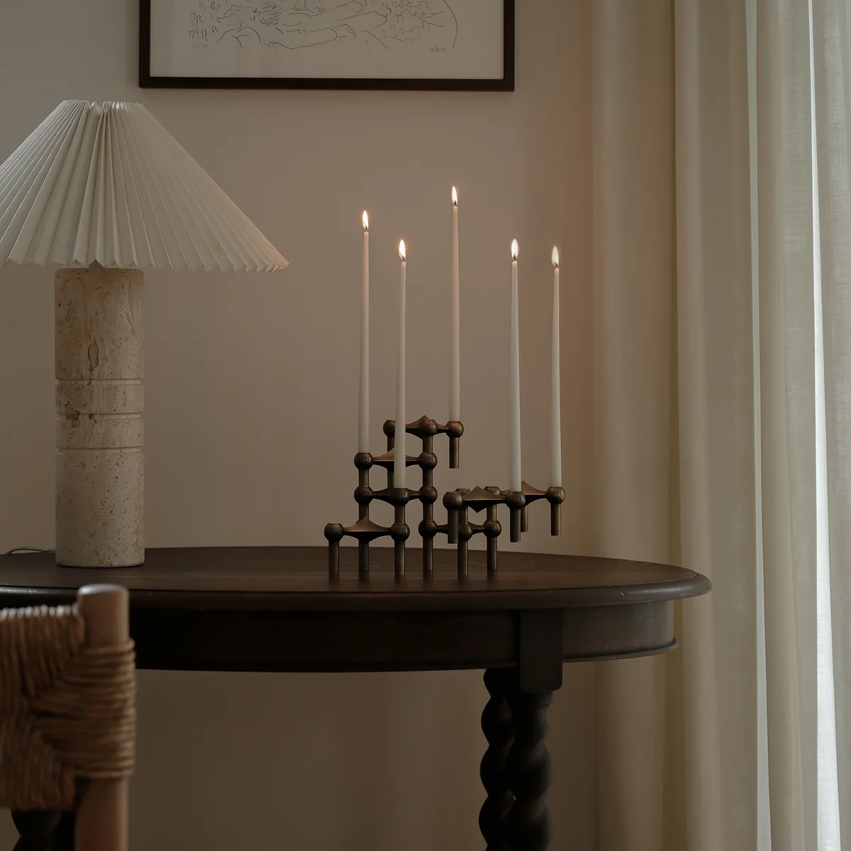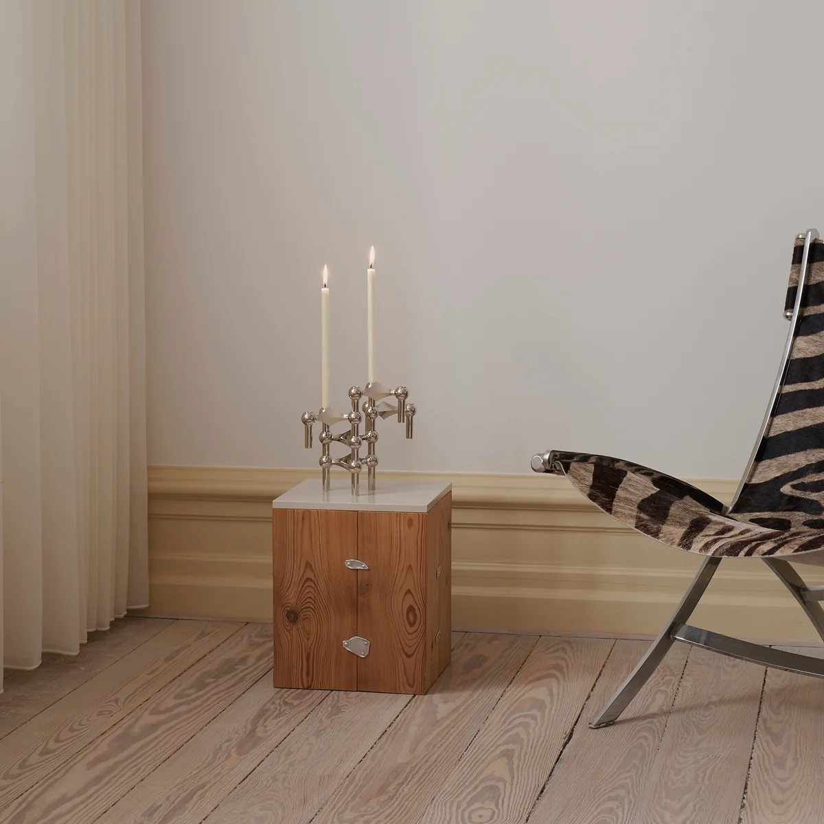 Es war damals die außergewöhnliche, geometrische Form, die den Kerzenhalter Ende der 60er Jahre zum Gesprächsthema in der Kunst- und Designszene machte und ihn in unzählige Häuser und Wohnungen brachte. Die Idee dazu kam Hans Nagel bei einem Sturz im Skiurlaub. Ihn faszinierte die Symmetrie, die drei seiner Finger nach dem Sturz im Schnee hinterlassen hatten so sehr, dass er daraus zusammen mit Werner Stoff den Stoff Nagel Kerzenhalter schuf.