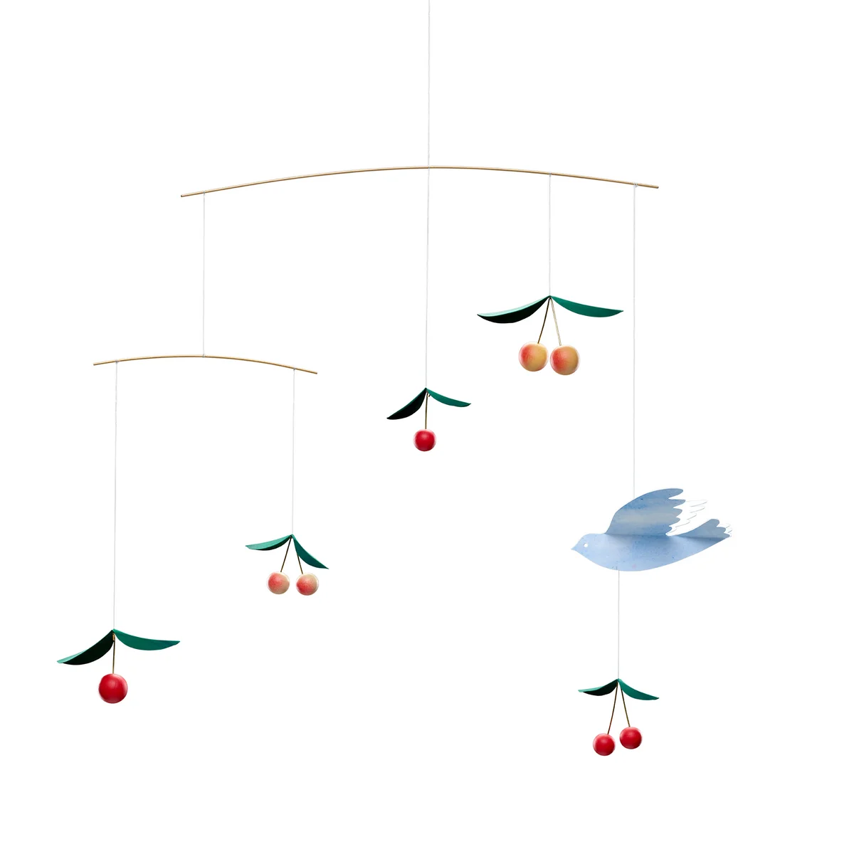 Das Cherry Dreams Mobile des Herstellers Flensdted Mobiles lädt zum träumen ein! Es wurde von Carina Caia für das dänische Label entworfen. Der fliegende Vogel findet Platz zwischen ruhigen Kirschzweigen. Die sonnengereiften Kirschen des Mobiles harmonieren großartig mit dem Vogel - Cherry Dreams begeistert mit seiner leichten und eleganten Optik.