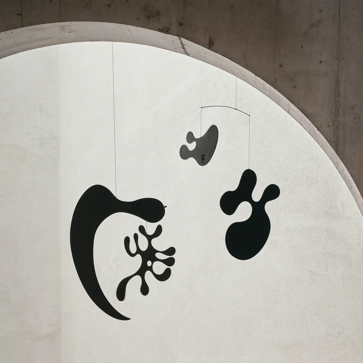 Entstanden sind die Mobiles Anfang der 1940-er Jahre bei einer Reihe von Experimenten mit Schichtholz. Charles und Ray Eames wollten damals die Technik der Schichtholzverformung vorantreiben. Die beiden fanden die zufällig entstandenen Mobiles so schön, dass sie die Modelle in ihrem Apartment in Los Angeles aufhängten.