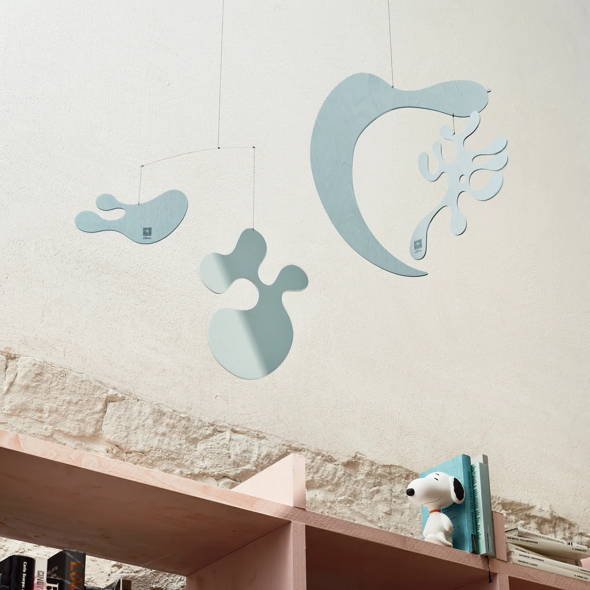 Die Eames Plywood Mobile Modelle von Vitra sind Nachbildungen der Original-Mobiles, die 1941 von Charles & Ray Eames entworfen wurden. Die Plywood Mobiles bestehen aus jeweils zwei abstrakt-organischen Schichtholz-Elementen, die sich spielerisch in- und umeinander drehen.