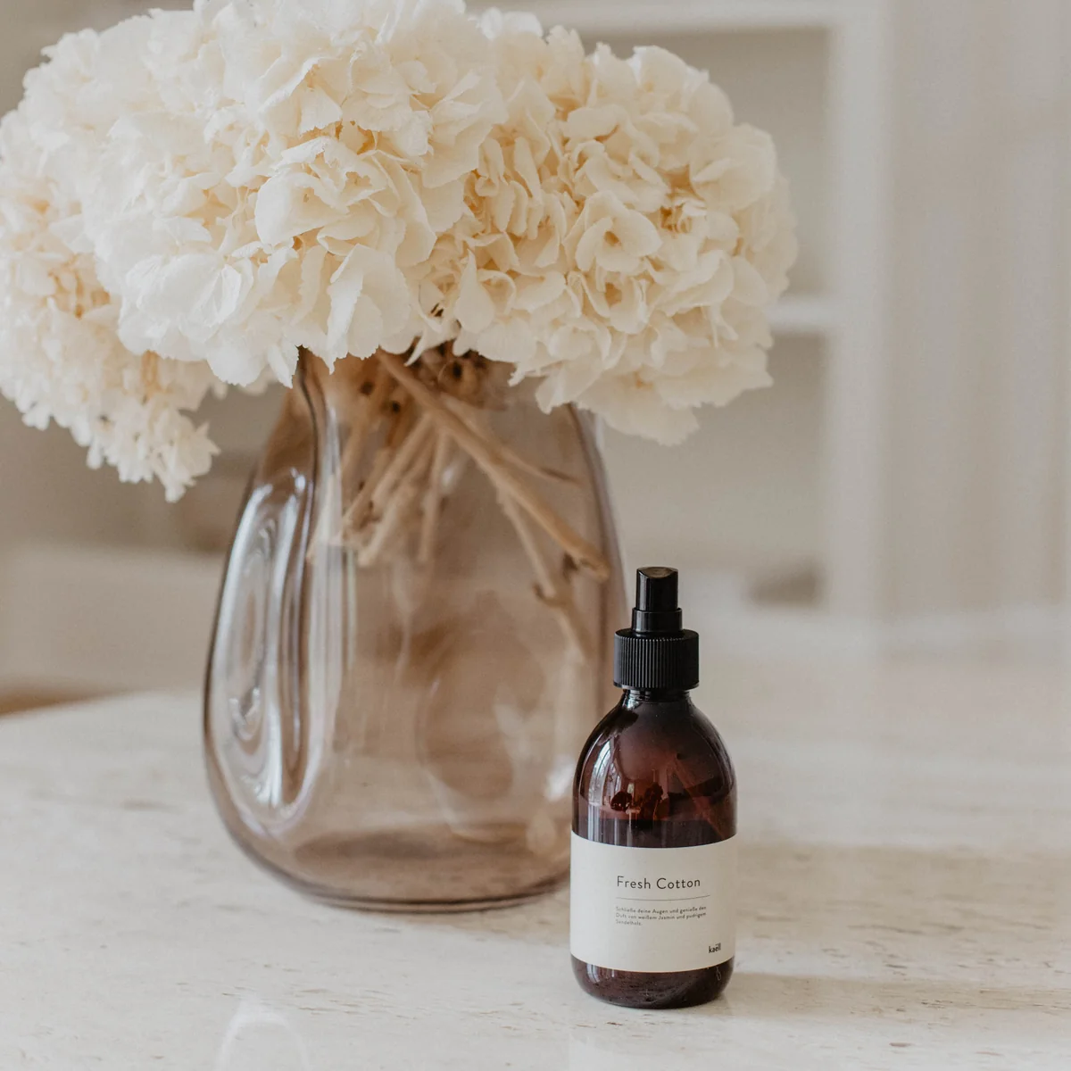 Der Raumduft Fresh Cotton von Kaëll belebt die Atmosphäre und verwandelt das Zuhause in ein duftendes Paradies. Der sanfte und zugleich belebende Duft erfüllt Ihren Raum mit Leichtigkeit und Eleganz. Er verströmt einen angenehmen und leichten Duft von frisch gewaschener Baumwolle und einer sanften Brise. Er schafft eine entspannte und wohltuende Atmosphäre in jedem Raum. Der Raumduft ist der perfekte Begleiter für Momente der Ruhe und Erholung.