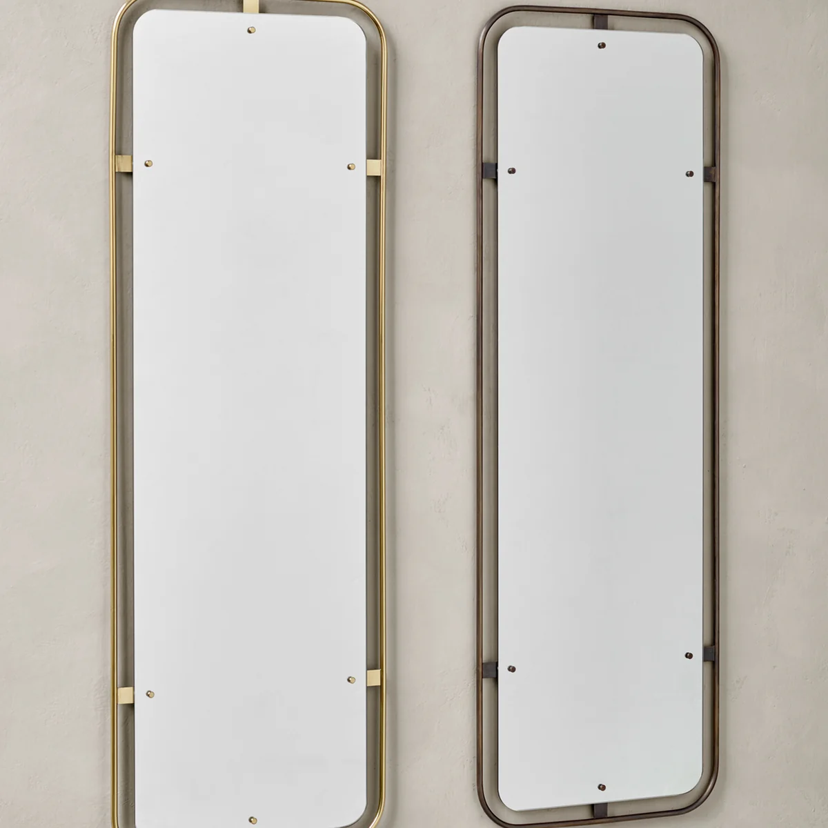 Mit Blick auf die Art und Weise, wie ein Bild oder ein Gemälde durch einen Rahmen zur Geltung kommt, untersuchte das Kopenhagener Designstudio Krøyer-Sætter-Lassen das selbe für einen Spiegel, ohne dabei die Schönheit und Reflexion des Glases in den Hintergrund rücken zu lassen. Entstanden ist der runde oder rechteckige Nimbus Spiegel von Audo mit einem Rahmen aus brüniertem oder poliertem Messing. Der Rahmen ist dabei so konstruiert, das eine Lücke zwischen Spiegelglas und Rahmen entsteht, die für eine luftig-leichte und zugleich elegante Erscheinung sorgt.