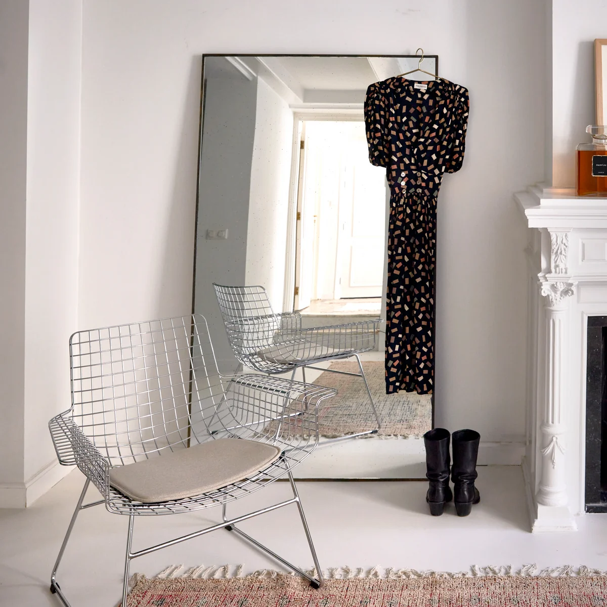 Der Bodenspiegel des niederländischen Herstellers HKliving überzeugt durch sein zeitloses Design und seine hohe Funktionalität. Das gesprenkelte Glas dient zudem als einzigartiges Feature, das für interessierte Blicke sorgt. Der Spiegel kann gleichermaßen im Schlafzimmer auf den Boden gestellt sowie im Flur oder Wohnzimmer aufgehangen werden. Auch über dem Kamin fügt er sich dank des schlanken Rahmens problemlos ein.