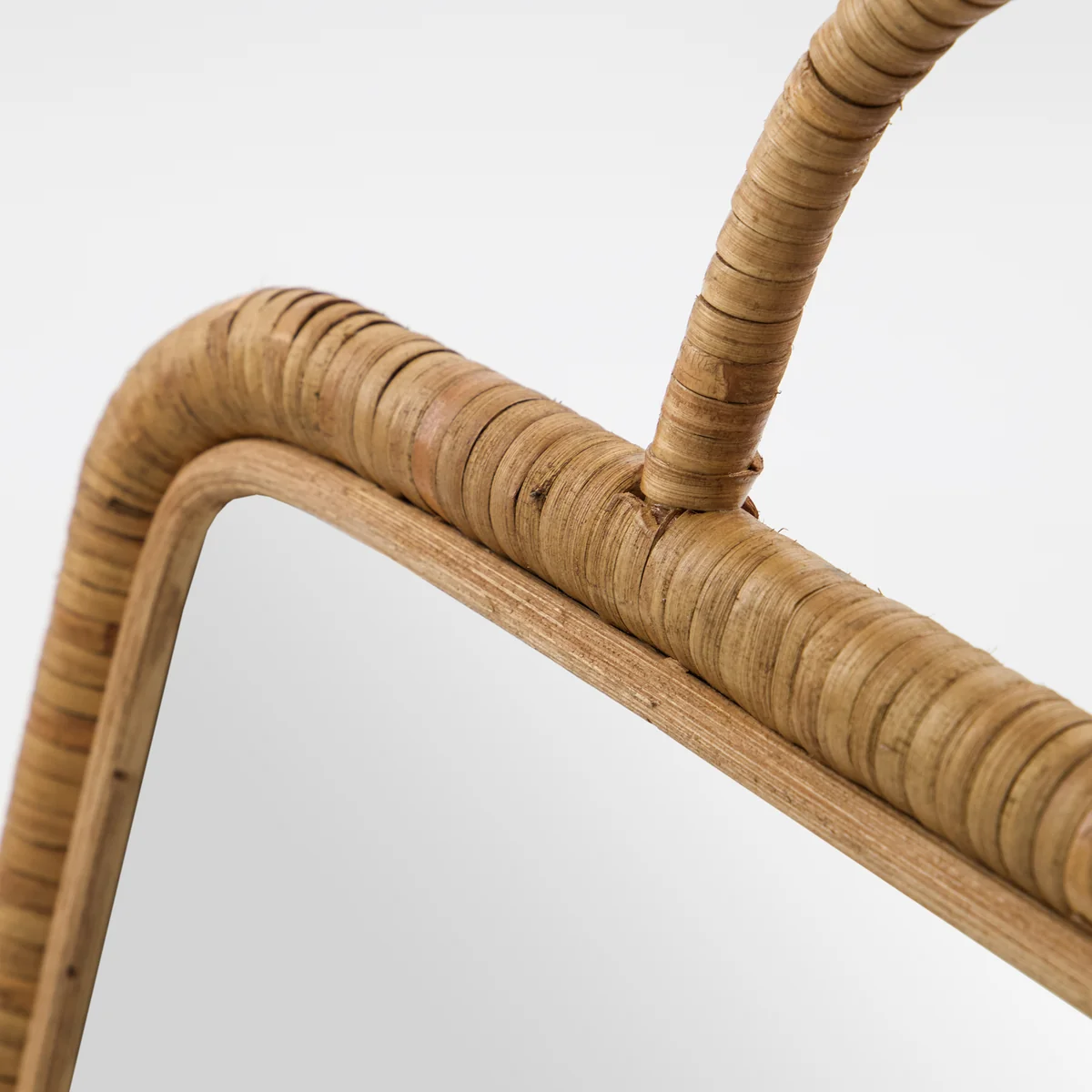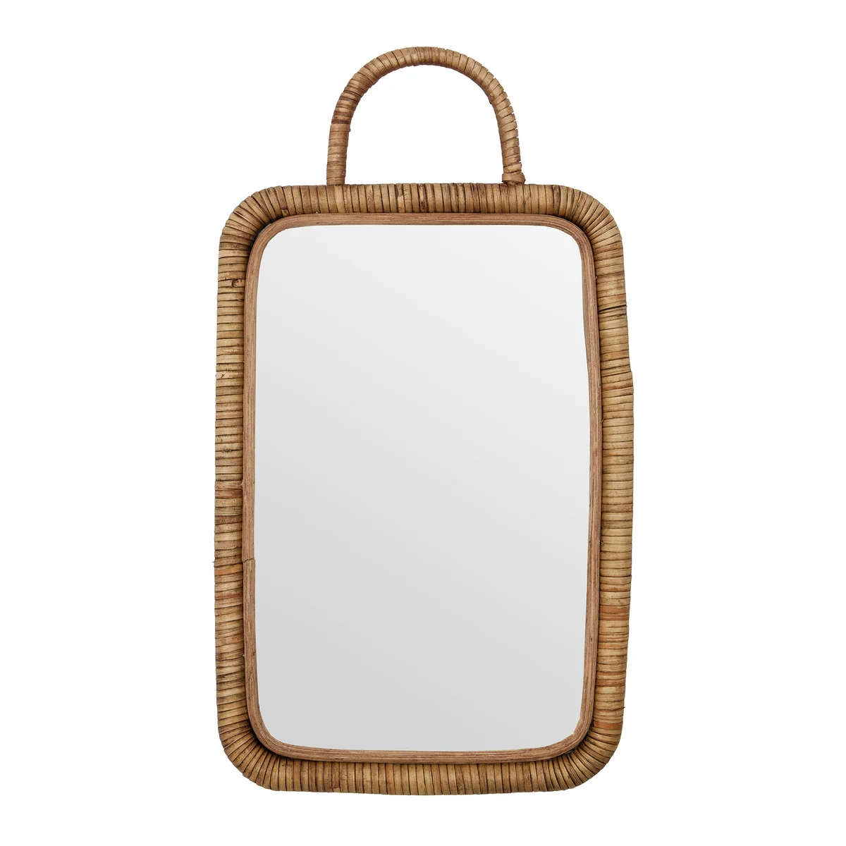 Mit dem Baki Spiegel mit Rahmen von Meraki kann dem Wohnbereich eine lässige Note verliehen werden. Das natürliche Rattan-Material setzt einen sanften Kontrast zu Marmor und Keramik und fügt jeder Einrichtung Textur hinzu. Der Baki Spiegel kann genutzt werden, um das Make-up zu überprüfen, bevor das Haus verlassen wird, oder er kann ganz einfach Teil der Dekoration zwischen Postern und anderen Wanddekorationen werden. Ein entspannter Look, der sowohl im Schlafzimmer als auch im Flur für eine helle und freundliche Atmosphäre sorgt.