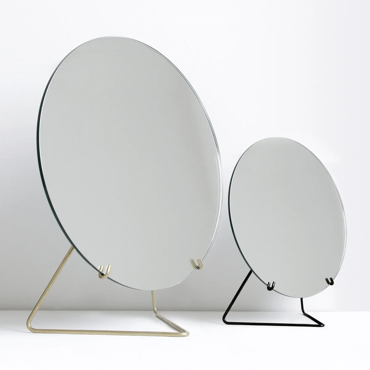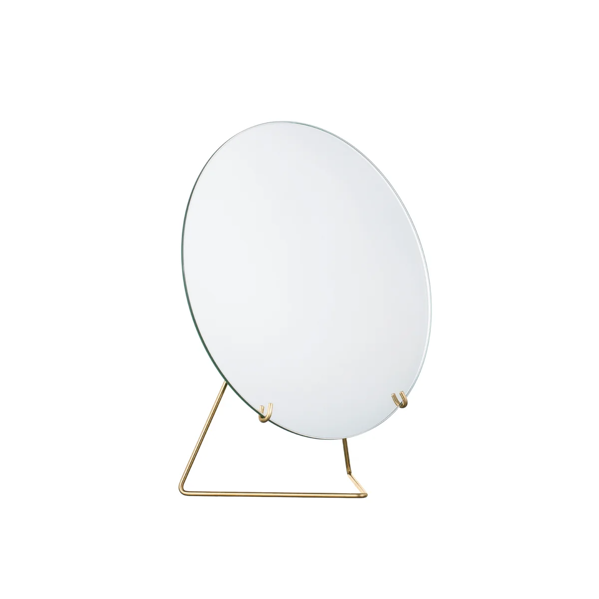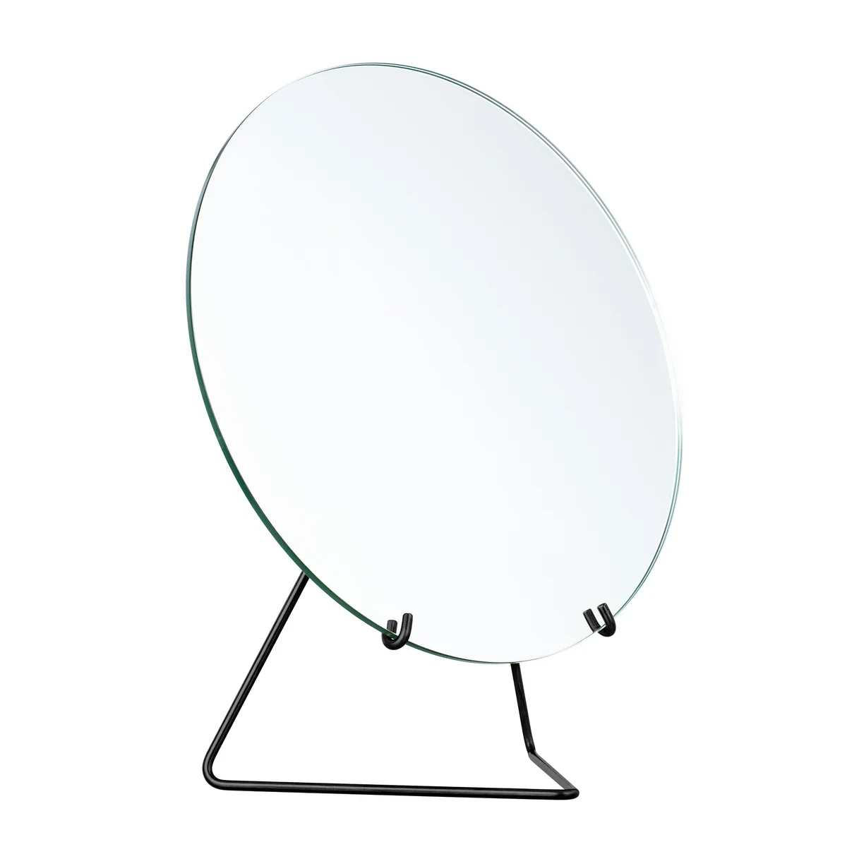 Der Tischspiegel von Moebe zeichnet sich durch sein minimalistisches Design aus, das sich hervorragend in jedes Ambiente einfügt. Rahmenlos und in runder Form, wird das Spiegelglas nur von einem filigranen Metalldraht gehalten, der trotz seiner reduzierten Form für Stabilität sorgt. Die beiden verwendeten Materialien ergänzen sich in Form und Beschaffenheit hervorragend, sodass ein harmonisch aufeinander abgestimmtes Produkt entsteht.