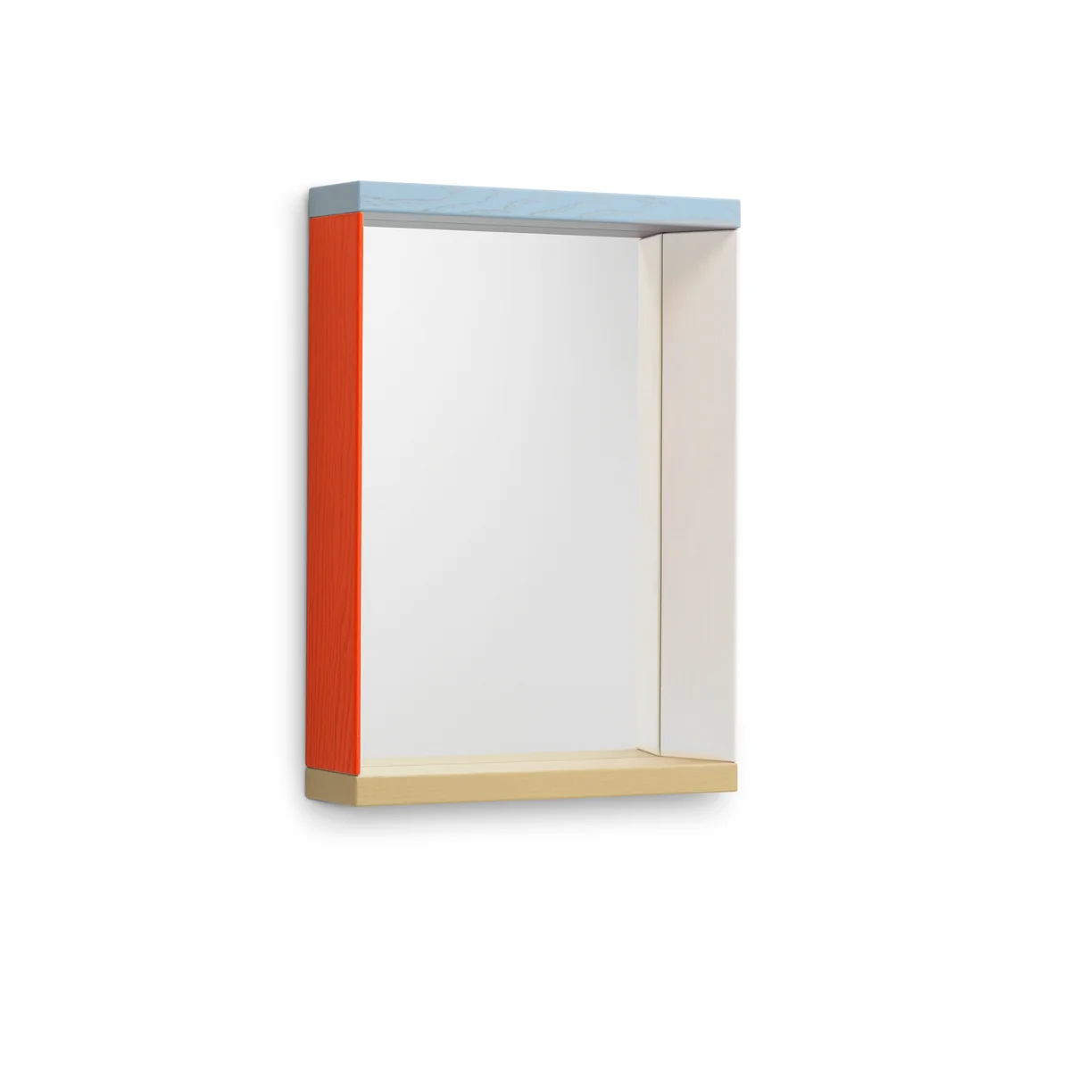 Die Colour Frame Spiegel sind in verschiedenen Größen erhältlich. Ihre Rahmen erinnern an robustes Holzspielzeug und verleihen den Spiegeln eine grafische Qualität. Jede Größe ist mit vier Seiten in verschiedenen Farben ausgestattet, die jeweils zwei lebendig-bunte und eine dezente Variante beinhalten. Die Tiefe der Rahmen ermöglicht es, sie als praktische Ablage für kleine Gegenstände wie Schlüssel oder Brillen zu nutzen oder als Podest für dekorative Accessoires.