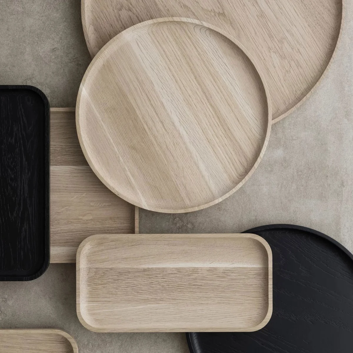 Das Oku Serviertablett von Blomus bietet eine einzigartige Möglichkeit, das Servieren von Speisen zu einem echten Highlight zu machen. Mit seiner vielseitigen Einsatzmöglichkeit eignet es sich nicht nur perfekt, um Gerichte ansprechend zu präsentieren, sondern kann auch als dekoratives Accessoire auf Ihrem Sideboard oder Esstisch verwendet werden. Die Serie OKU besticht durch ihre Vielfalt an Formen, Größen und Farben, was es Ihnen ermöglicht, das perfekte Tablett für Ihre Bedürfnisse und Ihren Einrichtungsstil zu finden. Hergestellt aus Eiche, vereint das zeitlose Design Nachhaltigkeit und Eleganz. Die Reinigung gestaltet sich einfach und unkompliziert, da die Tabletts mit einem feuchten Tuch gereinigt werden können.