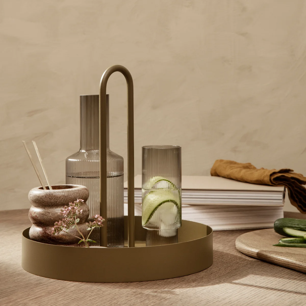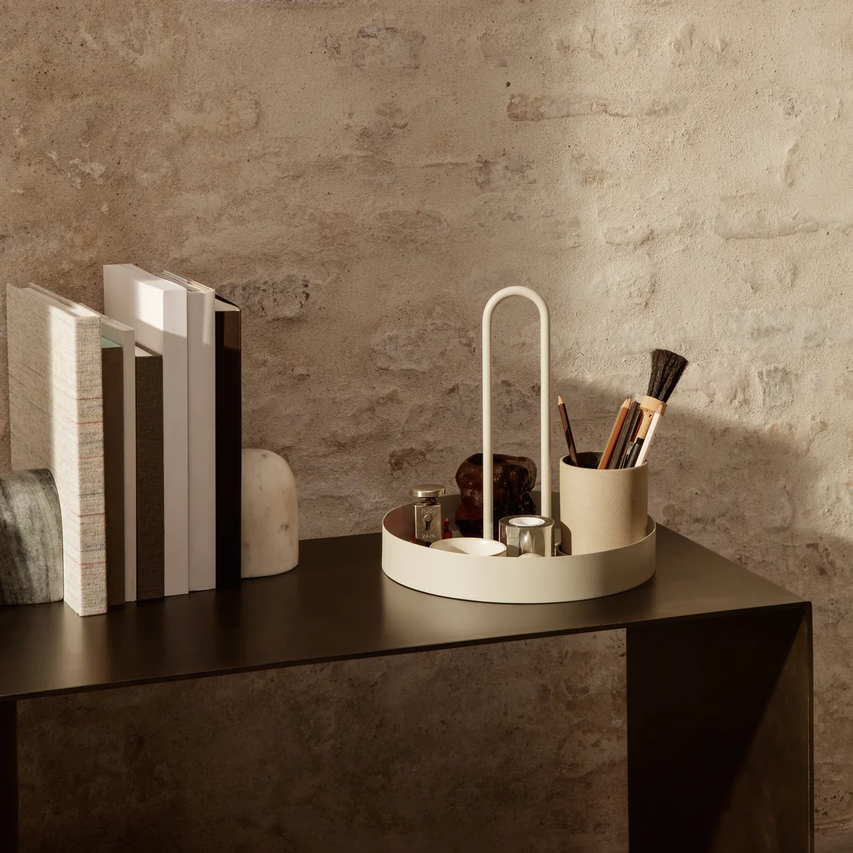 Das Grib Tablett von Ferm Living ist eine praktische Lösung für verschiedenste Bedürfnisse im Innen- und Außenbereich. Zwar heißt es Tablett, jedoch kann Grib als vielseitiges Design-Stück überall im Haus zum Einsatz kommen – für Gewürze und Öle in der Küche, zum Organisieren von Büromaterial im Arbeitszimmer oder zum Servieren von frischem Gebäck oder Getränken. Seine runde Form spiegelt sich im abgerundeten, langen Griff wider, der beim Tragen bequem in der Handfläche liegt.
