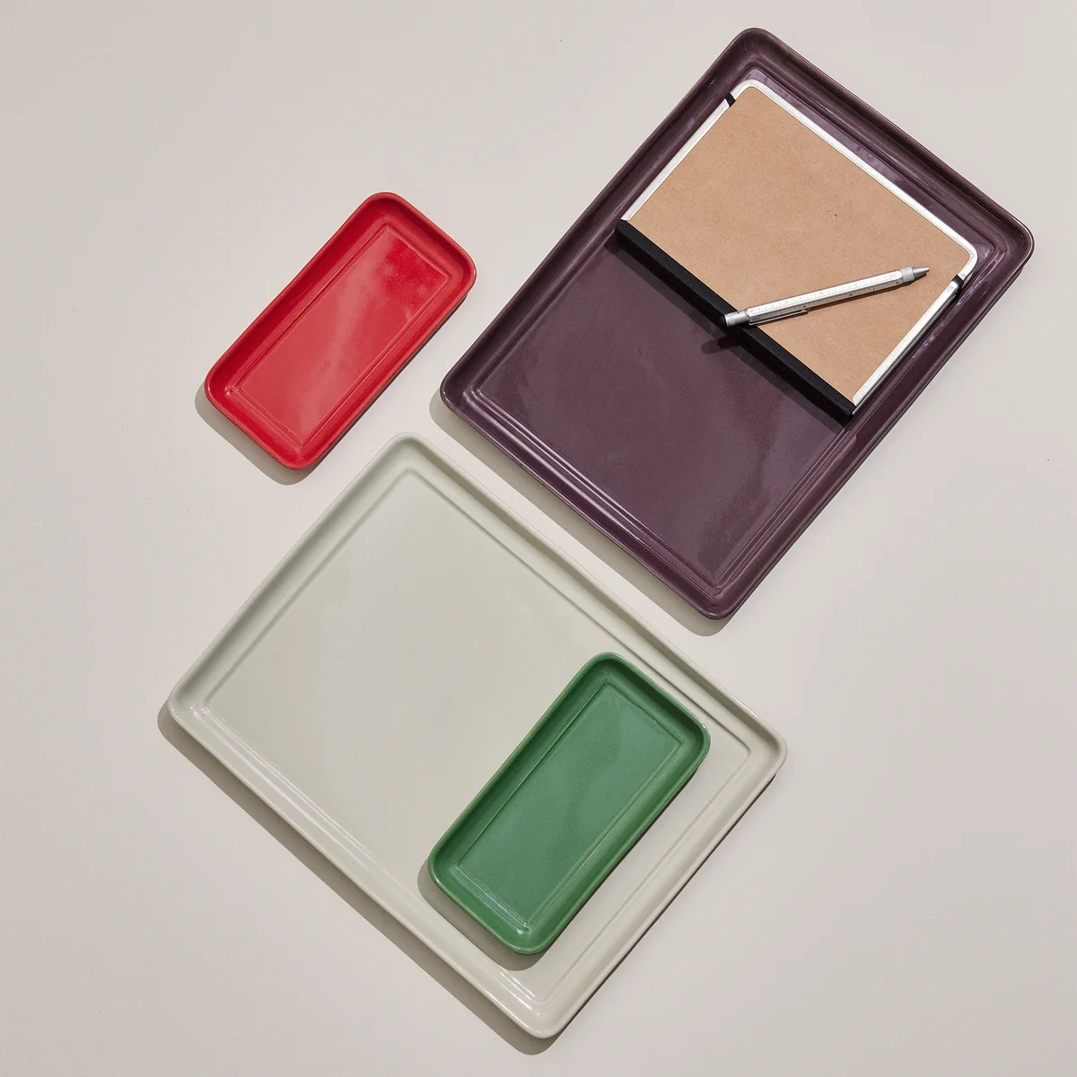 Das Amare Tablett des dänischen Herstellers Hübsch Interior ist ein vielseitiges Set, welches in keinem Haushalt fehlen darf. Das 2er-Set aus Keramik kann wunderbar im Arbeitszimmer, Wohnzimmer oder sogar in der Küche oder im Bad verwendet werden. In unterschiedlichen Größen sind die Tabletts multifunktional einsetzbar. Amare ist in unterschiedlichen Farbkombinationen erhältlich.