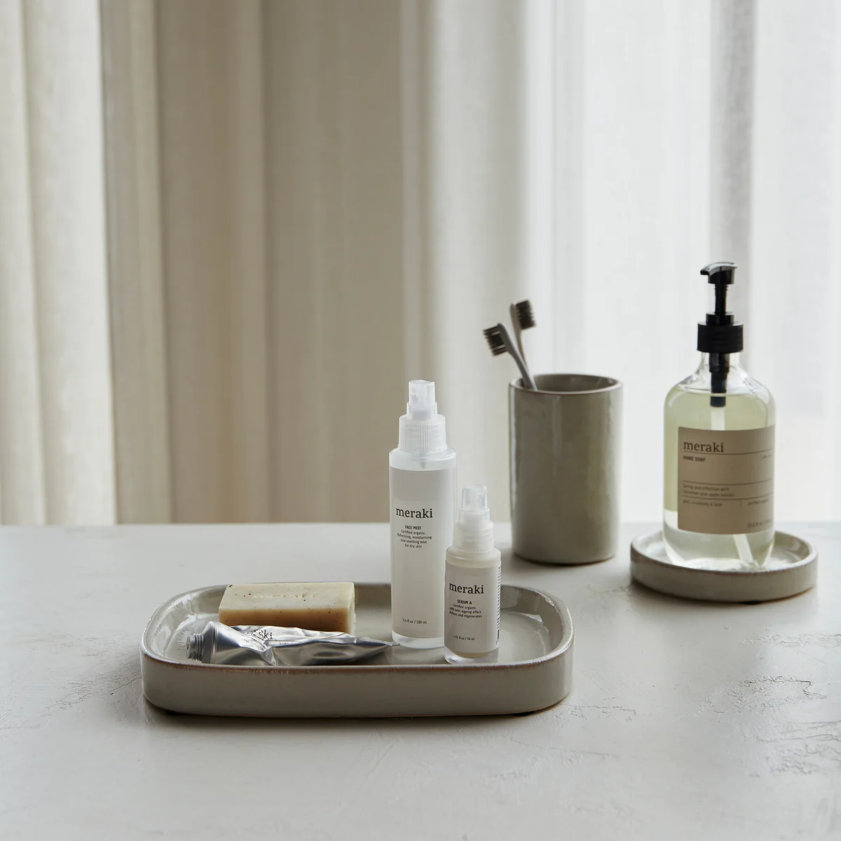 Das Datura Tablett von Meraki vereint zeitloses Design mit praktischer Aufbewahrung. Gefertigt aus hochwertigem Steingut, bringt es eine ruhige, natürliche Note in Küche, Badezimmer oder jeden anderen Raum. Ob Seifen, Cremes, Schmuck oder Küchenutensilien – das Tablett bietet eine elegante Möglichkeit, Alltagsgegenstände ordentlich und griffbereit zu präsentieren. Dank seines minimalistischen Stils fügt es sich harmonisch in verschiedenste Einrichtungsstile ein und sorgt für dezente Ordnung mit skandinavischem Charme.