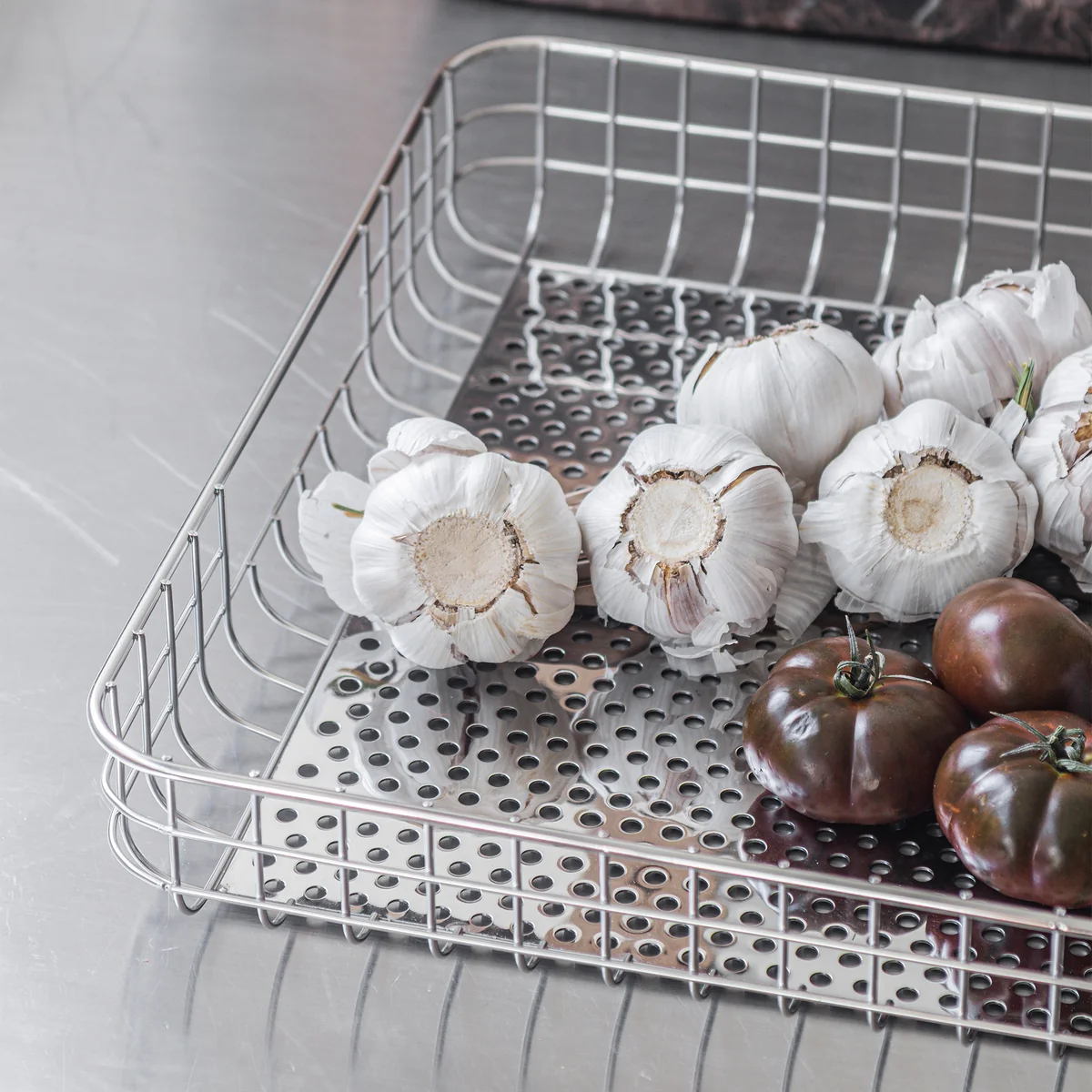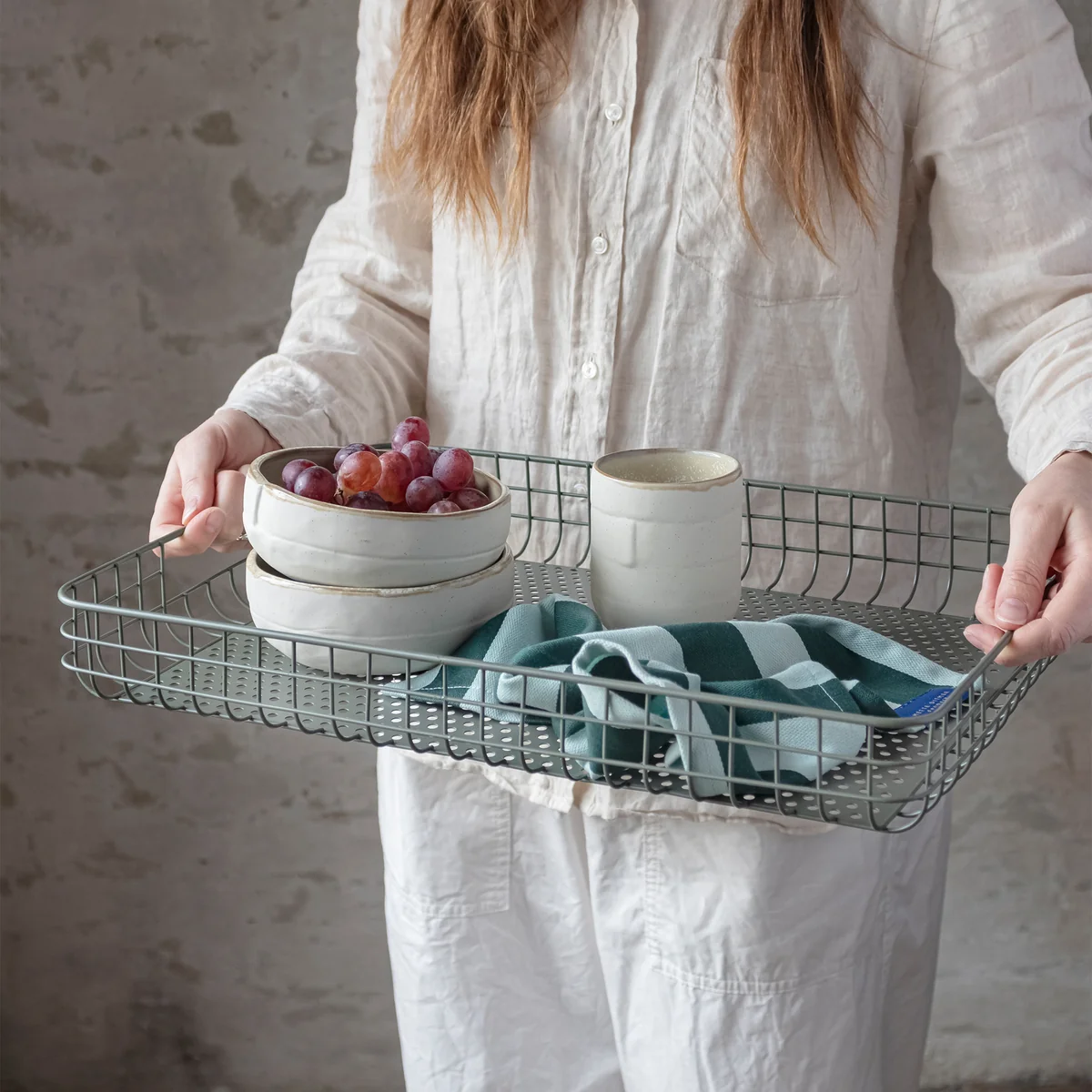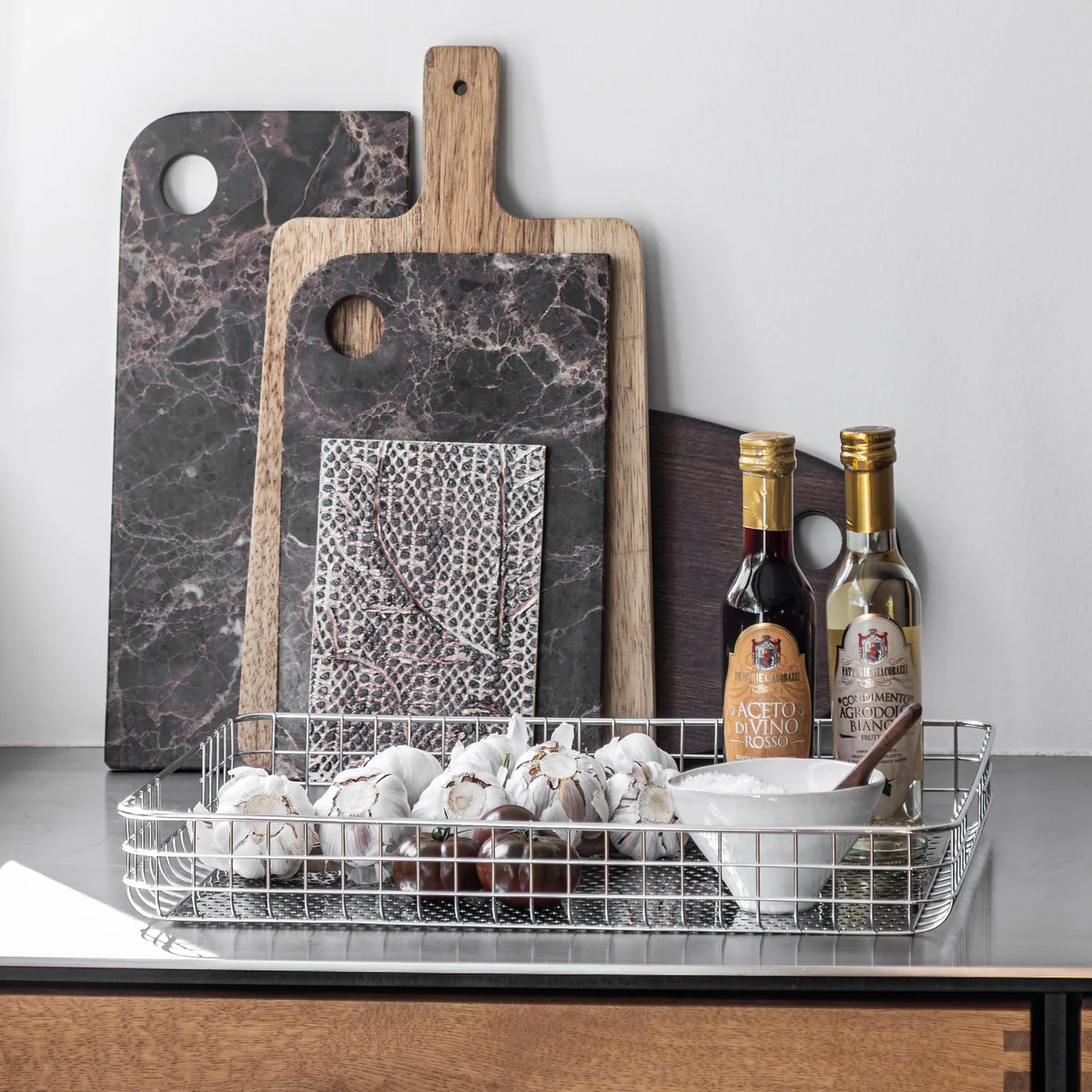 Das Lift Tablett eignet sich ebenso hervorragend als dekoratives Element in der Küche, zur Organisation von Papieren im Büro oder als Basis für ein Stillleben auf dem Esstisch.