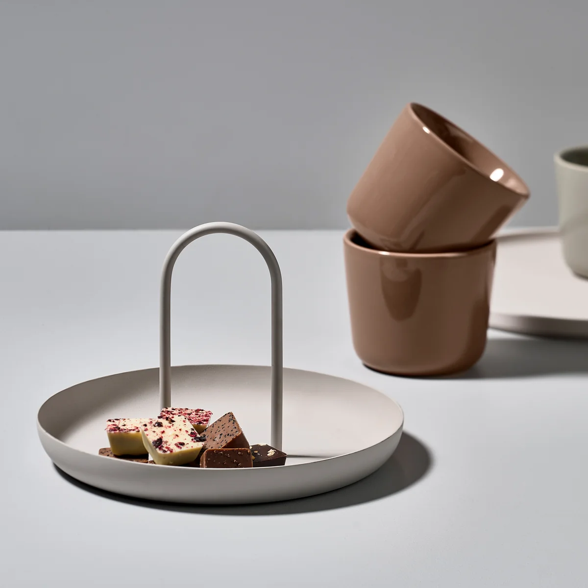 Das Singles Tablett von VE2 für Zone Denmark ist ein tolles Dekorationselement und praktischer Helfer zugleich. Dank seines Griffes können Snacks, Getränke und andere Kleinigkeiten einfach mit einer Hand transportiert werden. Auch als stilvoller Untersetzer für Öle und Gewürze oder alternative Obstschale auf dem Esstisch lässt sich das Tablett einsetzen. Darüber hinaus lassen sich auch Schmuck und Kosmetikartikel wunderbar auf dem Tablett in Szene setzen und sind so stets griffbereit.