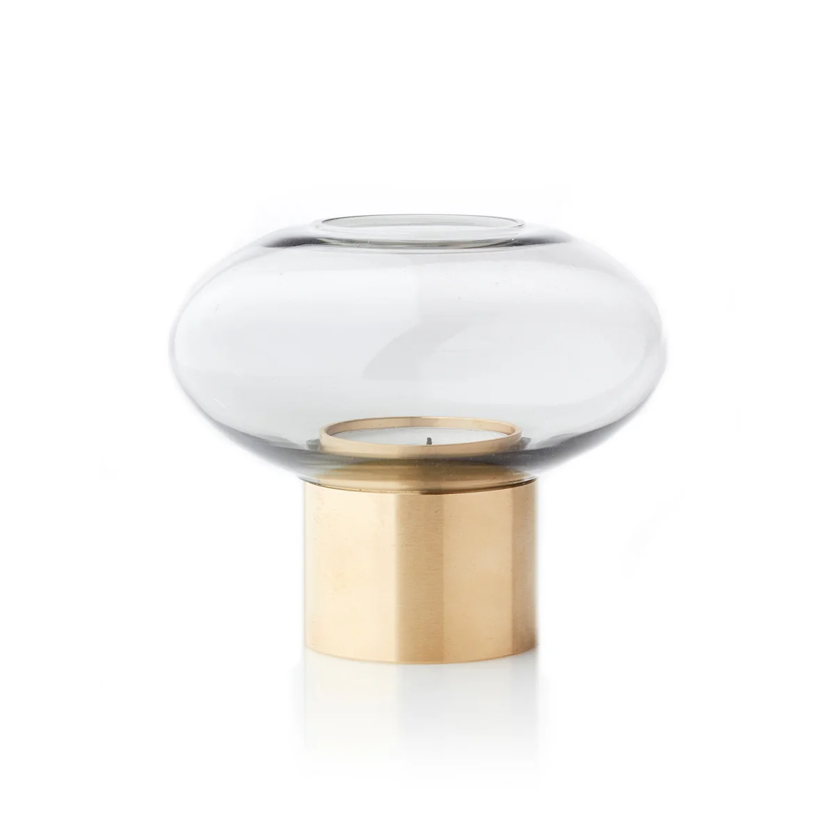 Teelichthalter aus Messing und Glas