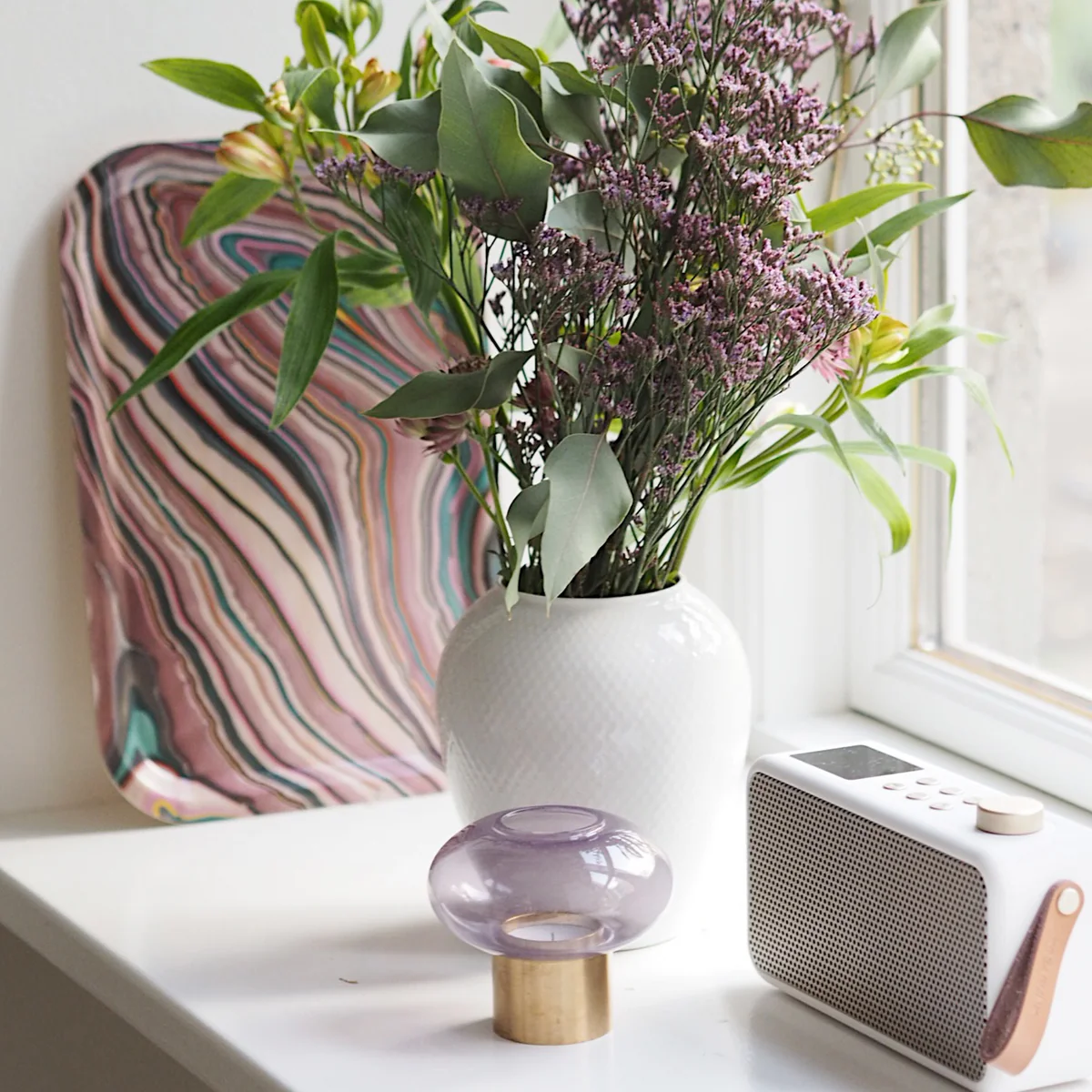 Der Mush Teelichthalter ist in verschiedenen Größen und mit Glas in verschiedenen Farben erhältlich. Zu mehreren ist der Teelichthalter eine schöne Dekoration auf dem Beistelltisch, in der Fensterbank oder im Regal.