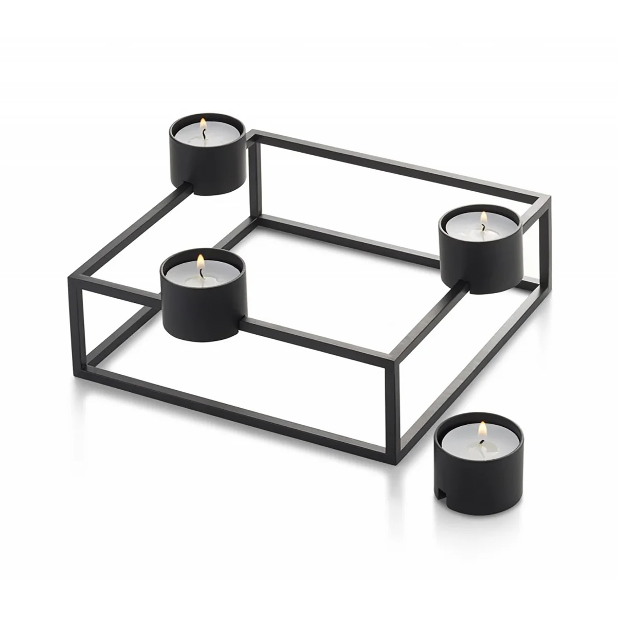 Der Cubo Teelichthalter von Philippi zeichnet sich durch sein stilvolles Design mit flexiblen, vielfältigen Möglichkeiten aus. Als Basis dient ein schwarzes Gestell in gradliniger Form, auf dem Teelichthalter per Magnet aufgesteckt werden können. Da die Anordnung frei gewählt werden kann, entsteht ein individuell gestaltbares Dekorationsobjekt.