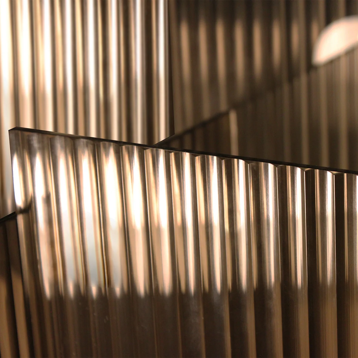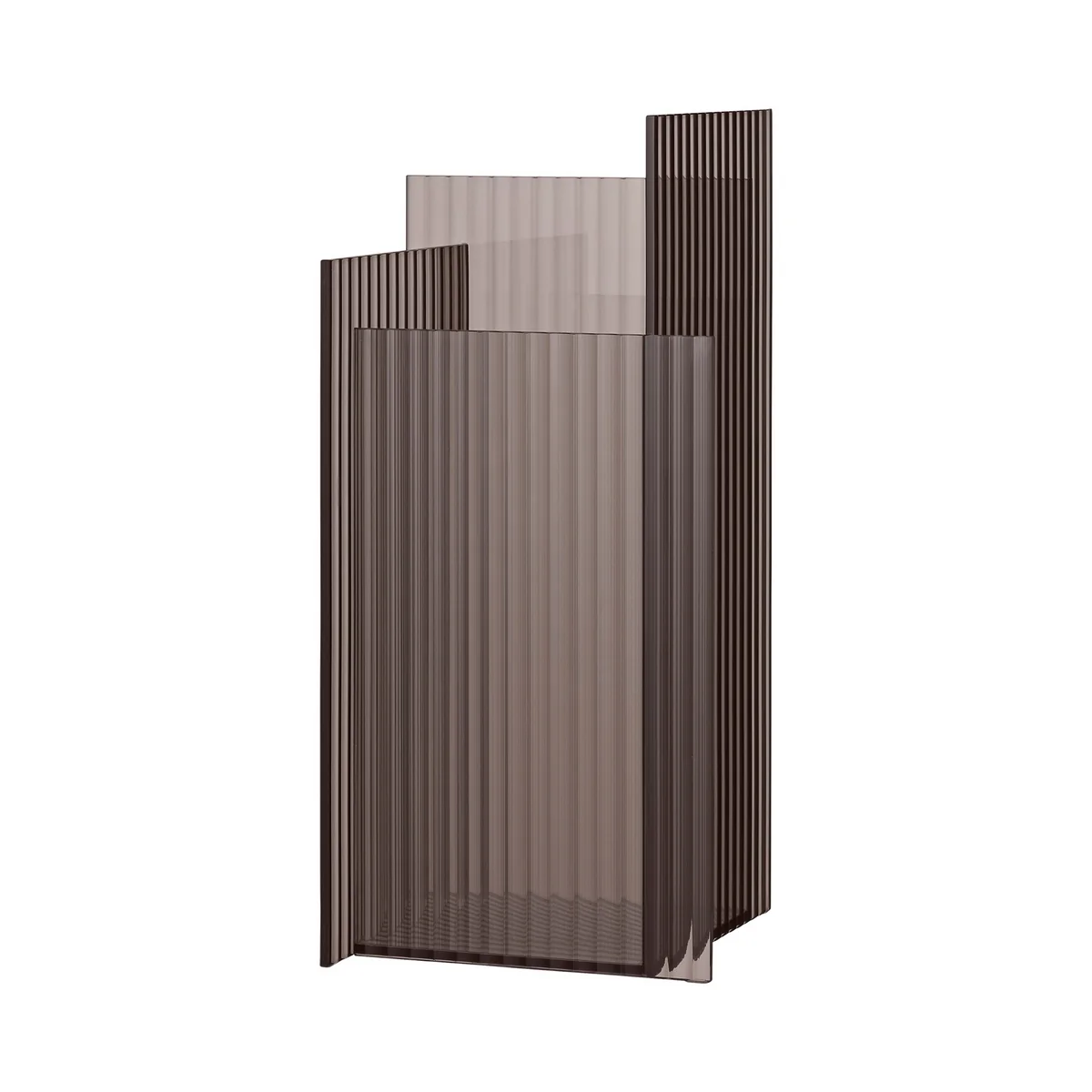 Flos besteht aus geriffeltem Glas in einem natürlichen Taupe-Ton, der zu jedem Teil des Hauses passt - sogar zu einer Terrasse im Freien. Was Pflanzen angeht, so machen sich große Blumenarrangements, aber auch Palmen wunderbar in der Vase.