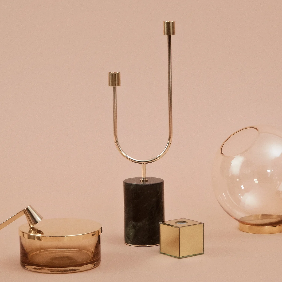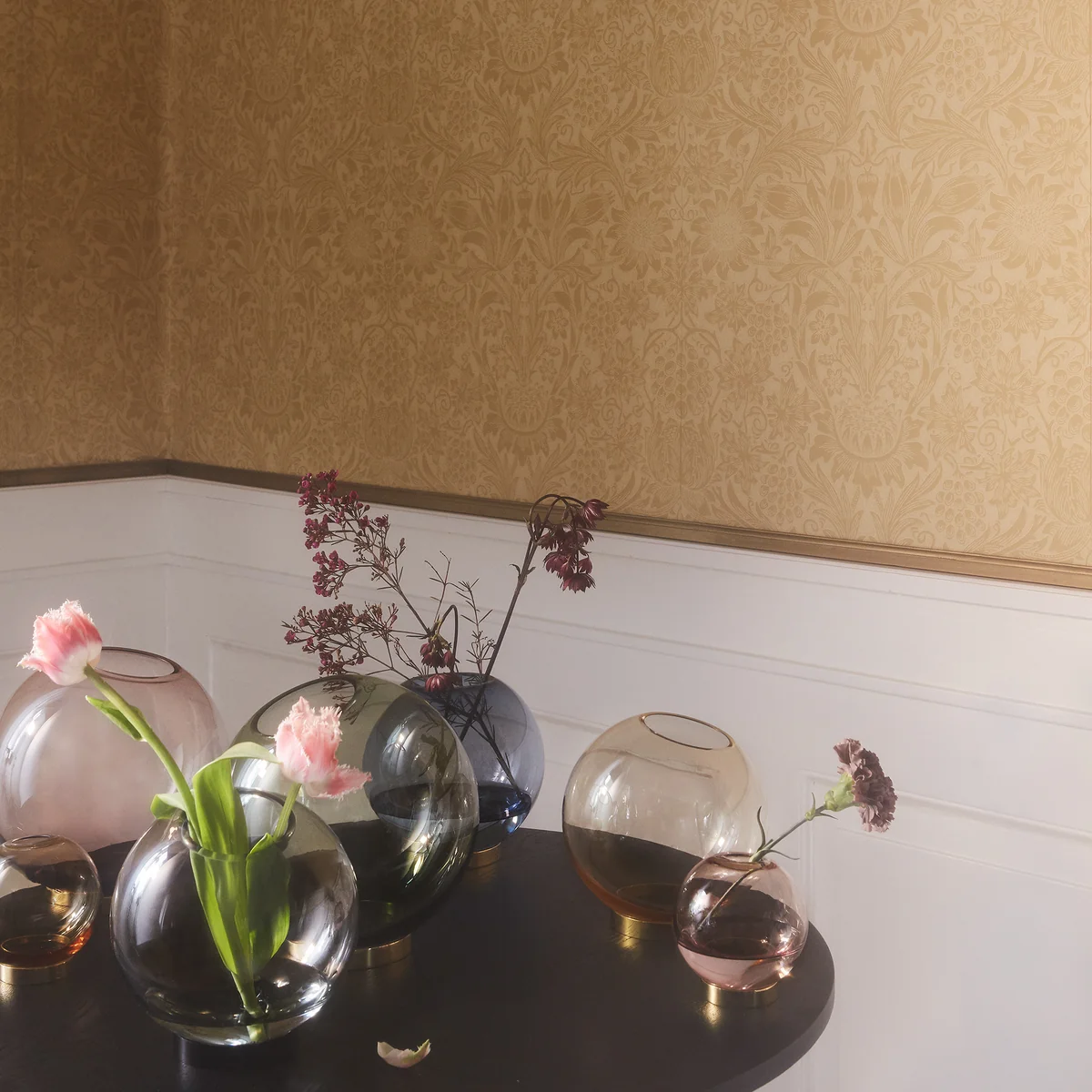 Die Globe Vase von AYTM zeichnet sich durch ihre ganz besondere Form aus. Aus Glas gefertigt, thront das globusförmige Gefäß auf einem flachen Sockel aus Messing oder Aluminium. Die Öffnung im Glas eignet sich hervorragend zum Arrangieren von Blumen, einzelnen Blättern oder Zweigen. Doch auch Raumduftstäbchen und selbst Süßigkeiten lassen sich in der Glaskugel stilvoll in Szene setzen.