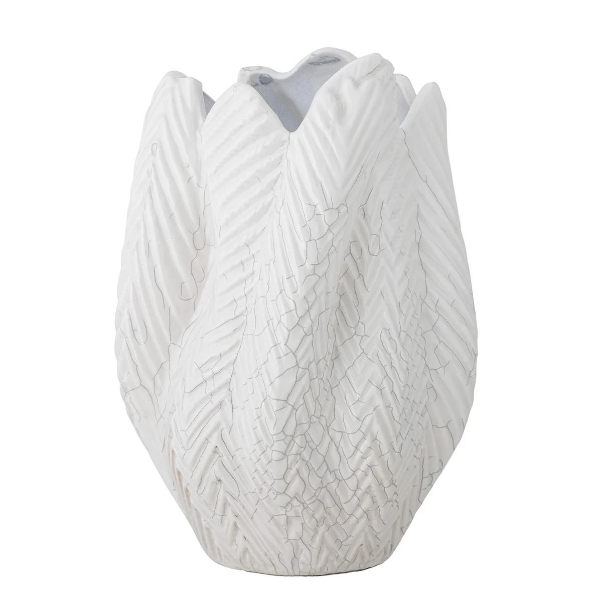 Die Besa Vase aus der Creative Collection von Bloomingville aus Steinzeug ist mit einer weißen gerissenen Glasur in einer schönen, von der Natur inspirierten Form gestaltet. Sie kann auf schöne und persönliche Weise mit anderem Wohnzubehör kombiniert werden.