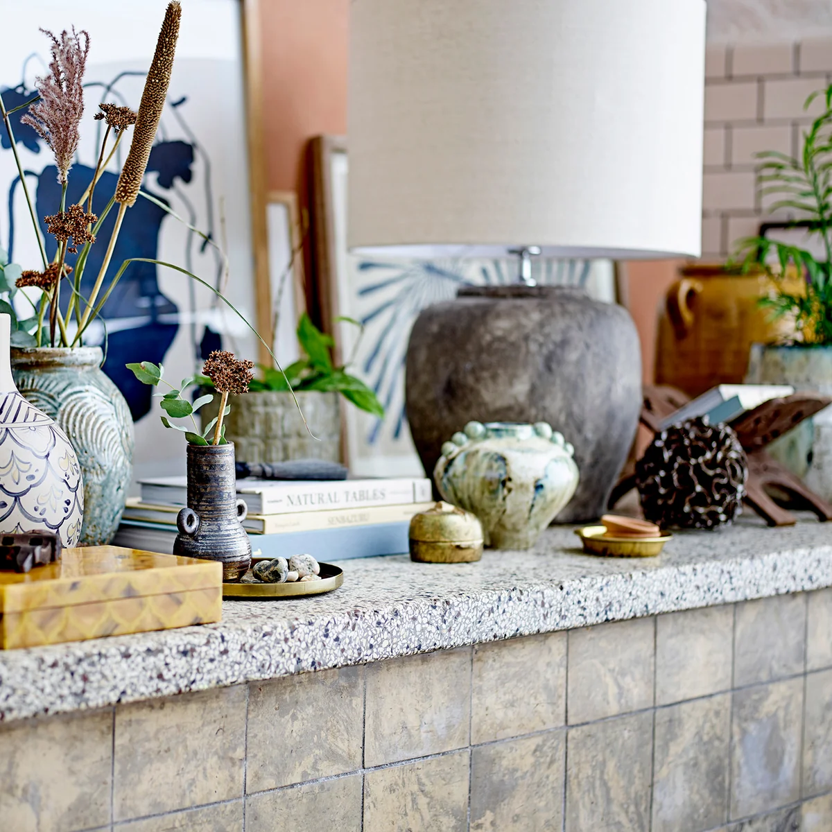 Die Deko-Vase Damian von Bloomingville ist eine rustikale Vase aus Terrakotta. Die Vase hat eine schöne grüne reaktive Glasur und ein graviertes abstraktes Muster. Aufgrund der Natur der Glasur sowie der handgefertigten Technik können Farbvariationen vorkommen - Perfekt für getrocknete Blumen, da sie nicht zu 100 % wasserdicht ist.