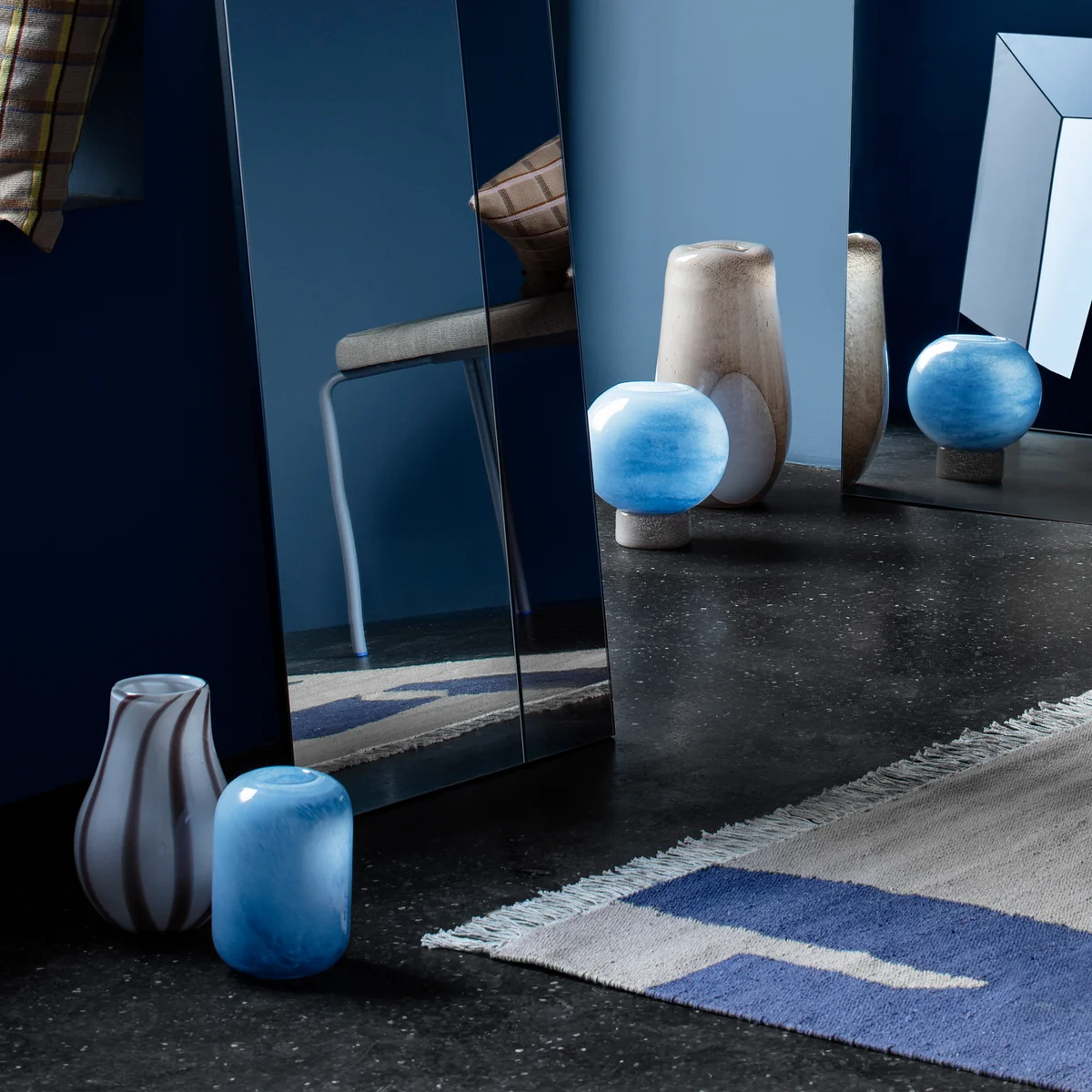 Hergestellt aus mundgeblasenem Glas können die Farben und Formen der die Kai Vasen leicht variieren.