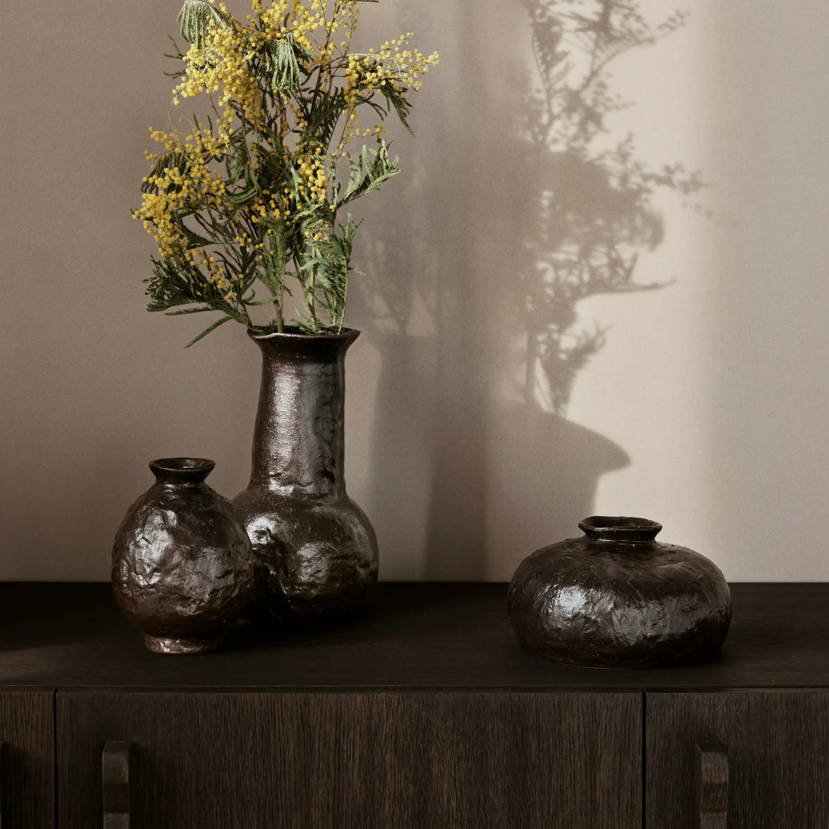 Die Doro Vase ist aus exquisitem, glasiertem Terrakotta gefertigt und zeichnet sich durch reiche Texturen und erdige Farbtöne aus, die der Einrichtung Wärme und Charakter verleihen. Ihr vielseitiges Design erlaubt es, eine Vielzahl von Blumenarrangements zu präsentieren, von lebhaften Sträußen bis hin zu zarten Blüten, die in jedem Raum einen auffälligen Blickpunkt bilden.