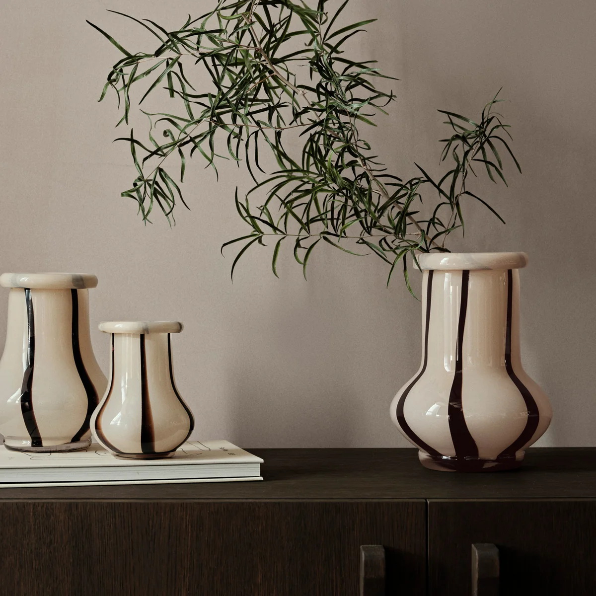 Die Riban Vase von Ferm Living vereint zeitloses Design mit moderner Eleganz. Ihre klaren Linien und sanften Kurven verleihen jedem Raum eine subtile Raffinesse. Hergestellt aus hochwertigem Keramikmaterial, strahlt diese Vase eine natürliche Schönheit aus, die perfekt zu einer Vielzahl von Einrichtungsstilen passt. Ob mit einem üppigen Blumenstrauß oder einfach als stilvolles Dekorationsstück für sich allein, die Riban Vase setzt immer ein ansprechendes Statement in jedem Zuhause.
