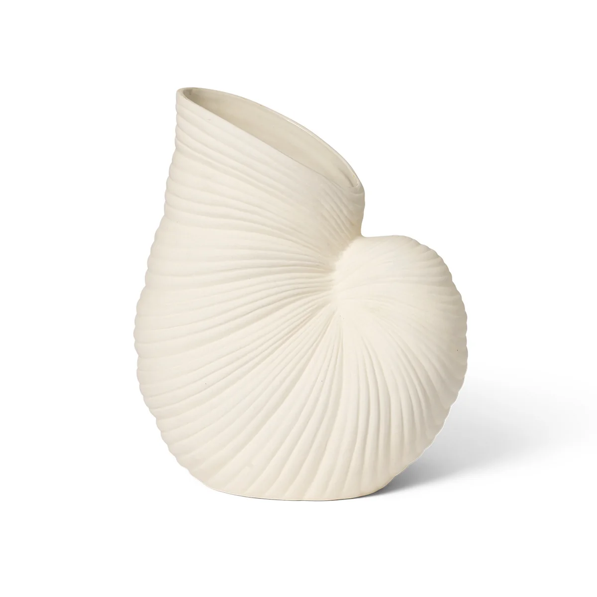 Die Shell Vase von Ferm Living bringt eine subtile Eleganz und ein Hauch von Natur in Ihr Zuhause. Gefertigt aus hochwertigem Steingut, beeindruckt die Vase durch ihre muschelartige Form, die ein organisches und zugleich modernes Design verkörpert. Die Außenseite der Vase ist unglasiert, was ihr eine natürliche, matte Textur verleiht, während die Innenseite glasiert ist, um Wasser- und Feuchtigkeitsschutz zu bieten. Diese Kombination aus strukturierten und glatten Oberflächen schafft eine ansprechende visuelle und haptische Kontraste, die der Shell Vase sowohl Funktionalität als auch stilvolle Ästhetik verleihen.