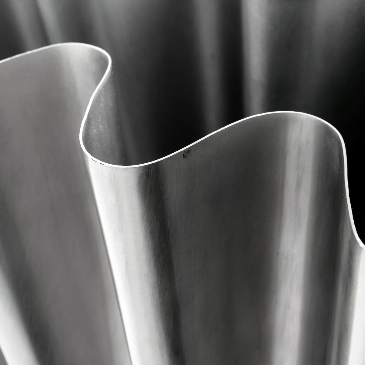 Die dynamischen Falten der Vase sind nicht nur dekorativ, sondern unterstützen die Stränge der Blumen. So können in der Vase sowohl einzelne Blumen und Sträucher als auch üppige Blumensträuße stilvoll arrangiert werden.