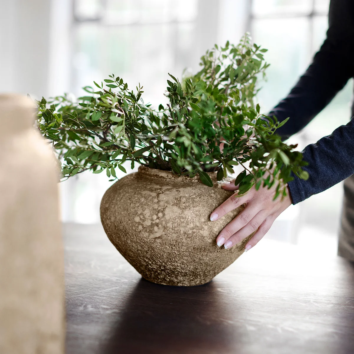 Der Luna Krug von Birgitte Rømer für Muubs ist dank seiner einzigartigen Oberfläche ein wundervoller Hingucker. Die besagte Oberfläche des Krugs erinnert an Mondkrater, da der Krug von Hand geformt, bemalt und gebrannt wird. Die hellgraue Färbung des Luna Krugs sorgt für einen intensiven, warmen nordischen Ausdruck. Ob einzeln als Dekoelement oder als dekorativen Behälter für Trockenblumen. Der Krug sollte ausschließlich im Innenbereich eingesetzt werden.