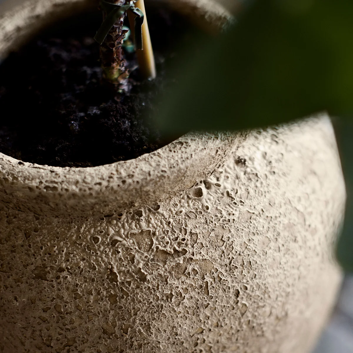 Handgefertigter Krug in Mondkrater-Optik