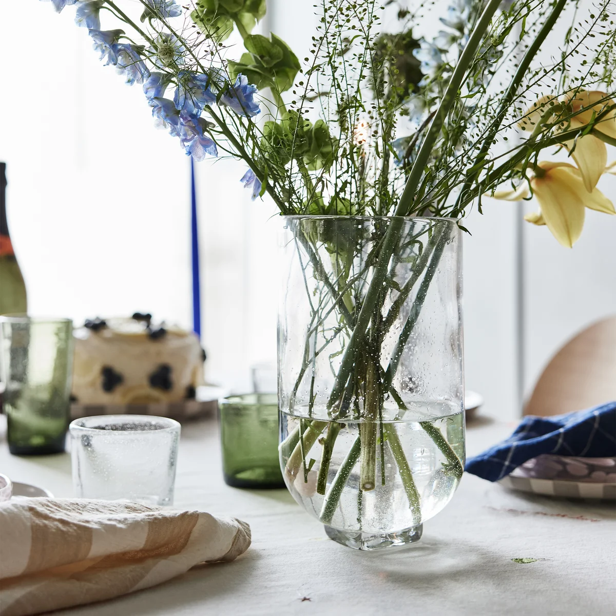 Die Kuki Vase von OYOY ist ein beeindruckendes Beispiel für modernes skandinavisches Design, das durch Schlichtheit und Eleganz überzeugt. Hergestellt aus hochwertigem Glas, besticht diese Vase durch ihre klare, organische Form und die fein gearbeitete Oberfläche. Das transparente Material erlaubt es, die Schönheit der Blumen und Pflanzen optimal zur Geltung zu bringen, während das zeitlose Design sich mühelos in verschiedene Einrichtungsstile einfügt. Ob als auffälliges Einzelstück oder in Kombination mit anderen Dekorationselementen, die Kuki Vase verleiht jedem Raum eine frische und stilvolle Note. Perfekt geeignet für frische Blumen, dekorative Zweige oder auch als eigenständiges Kunstobjekt, ist die Kuki Vase von OYOY ein vielseitiges und ästhetisch ansprechendes Accessoire für Ihr Zuhause.