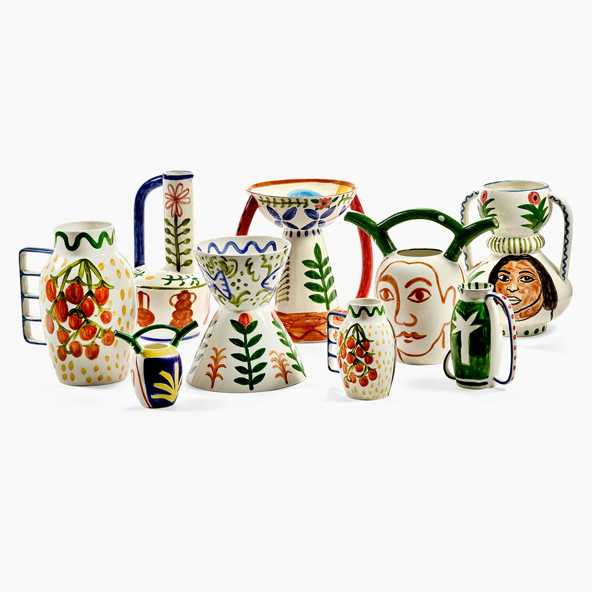 - Handbemalte Vase mit kräftigen, naturinspirierten Farben