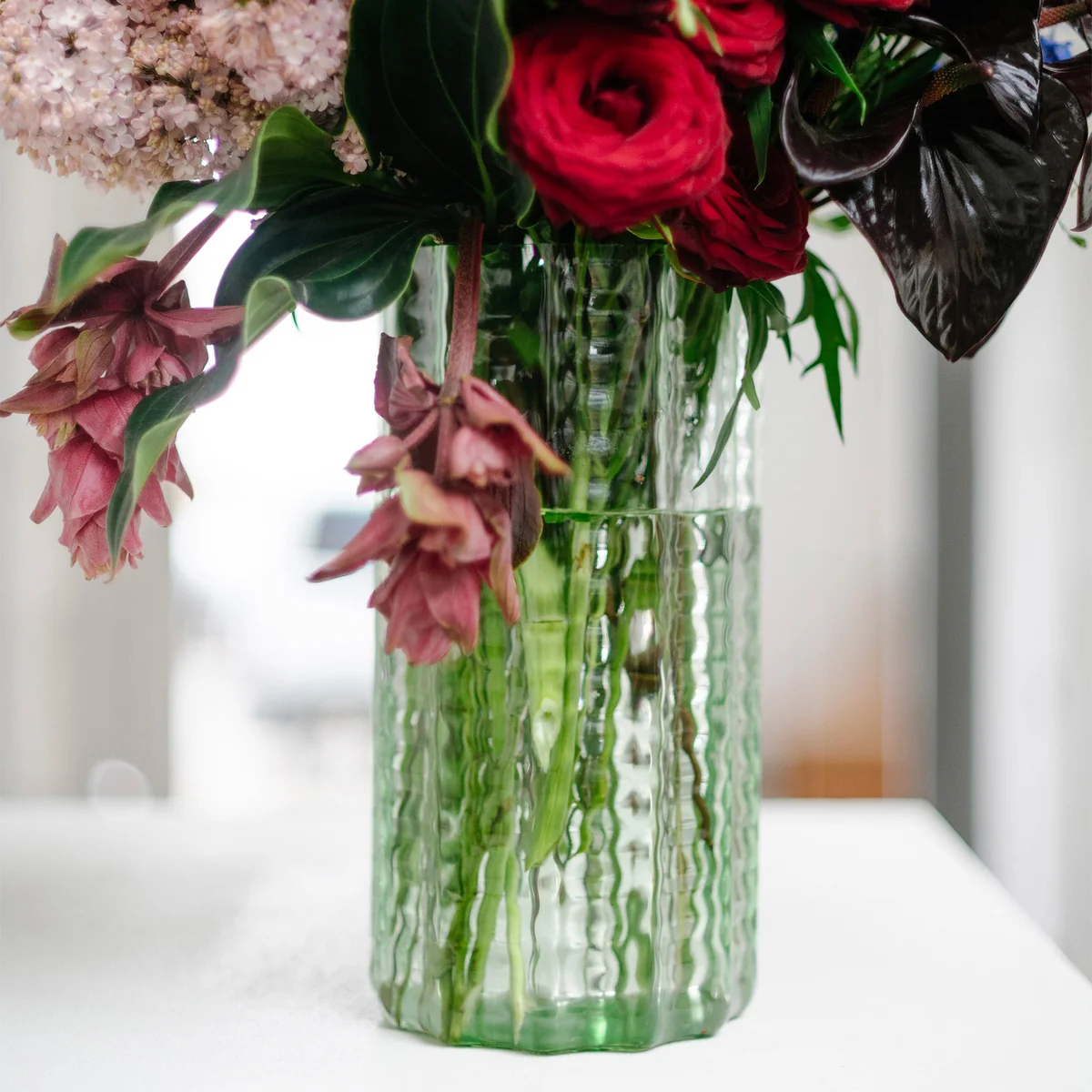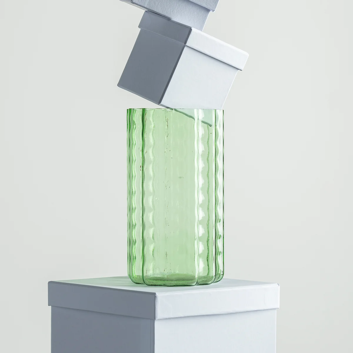 Diese mundgeblasene Vase besticht durch ihre besondere Form, die von den großflächigen Fenstern des MAS Museums in Antwerpen inspiriert ist – ein architektonisches Highlight, das Designer Ruben Deriemaker als beispielhaft für gelungenes Design betrachtet. Die sanft geschwungene Struktur verleiht der Vase ihren Namen „Waves“ und unterstreicht ihre moderne Eleganz. Mit ihrem dezenten Grünton eignet sich die Vase ideal für ein kleines Blumenarrangement und setzt stilvolle Akzente – ob alleinstehend oder in Kombination mit weiteren Objekten.