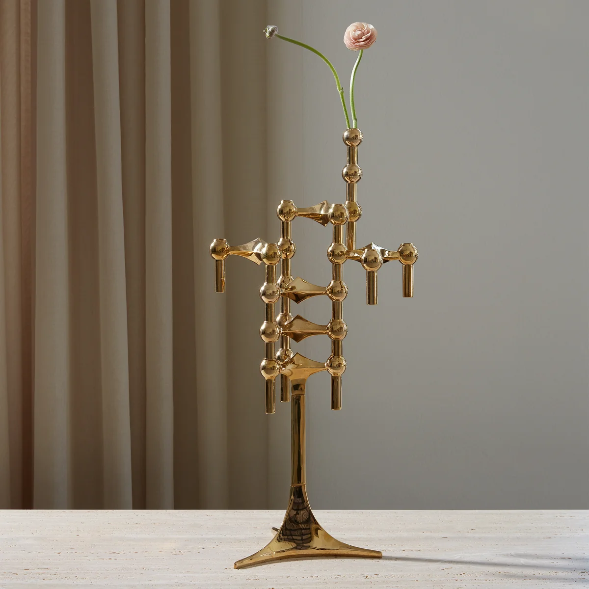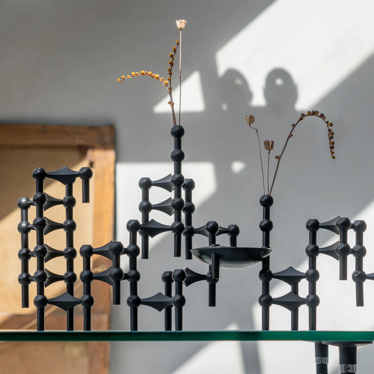 Die Vase von Stoff Nagel ist als natürliche Fortsetzung des charakteristischen Stoff Nagel-Ausdrucks konzipiert und kann sowohl an den Kerzenhaltern, der Schale als auch dem Ständer befestigt werden. Die Stoff Nagel Vase ergänzt das klassische Design um eine zusätzliche Dimension und ermöglicht es, eine farbenfrohe Blumendekoration nach Wahl in die Figur zu integrieren. Je nach Jahreszeit und Trend können sowohl frische als auch getrocknete Blumen in der Vase verwendet werden.