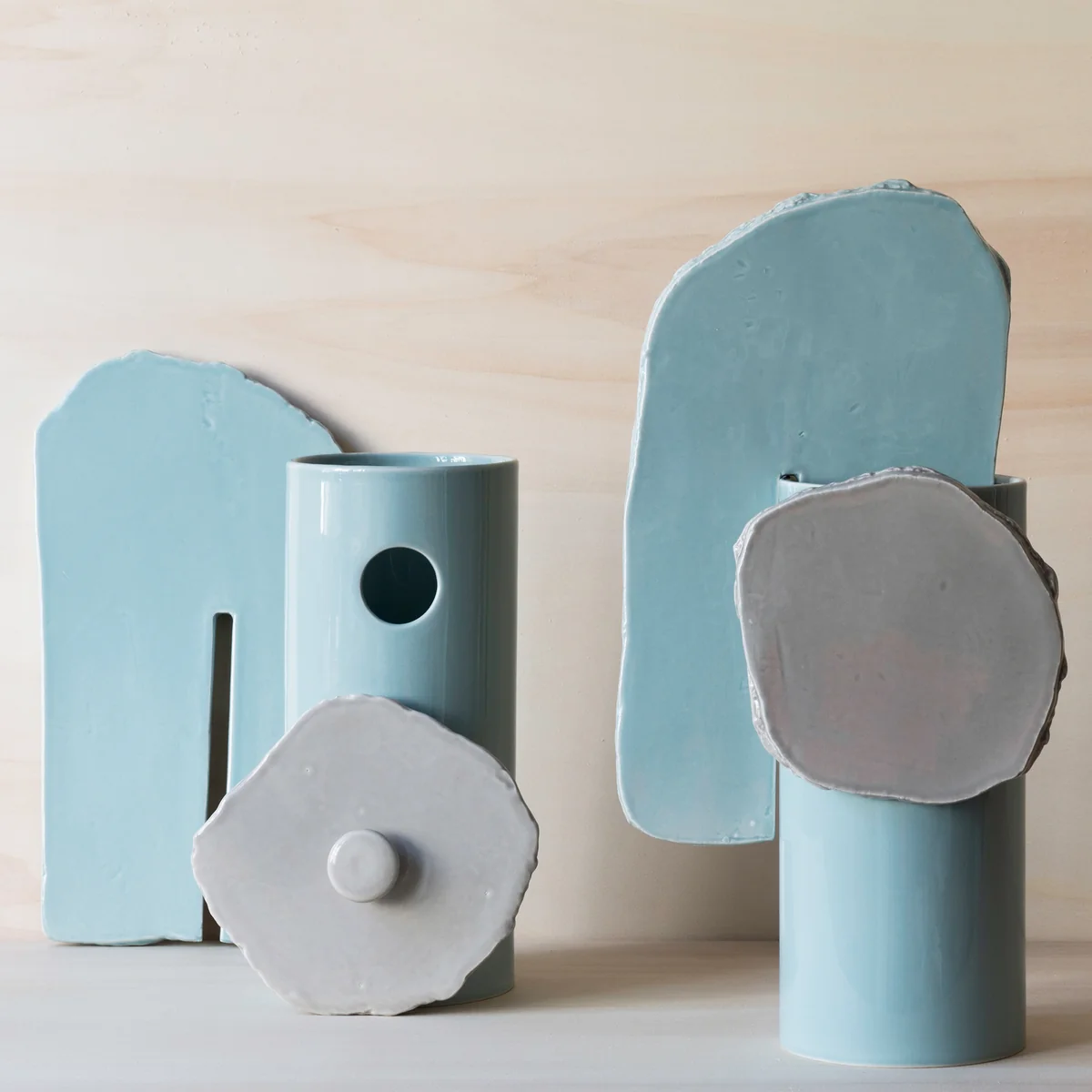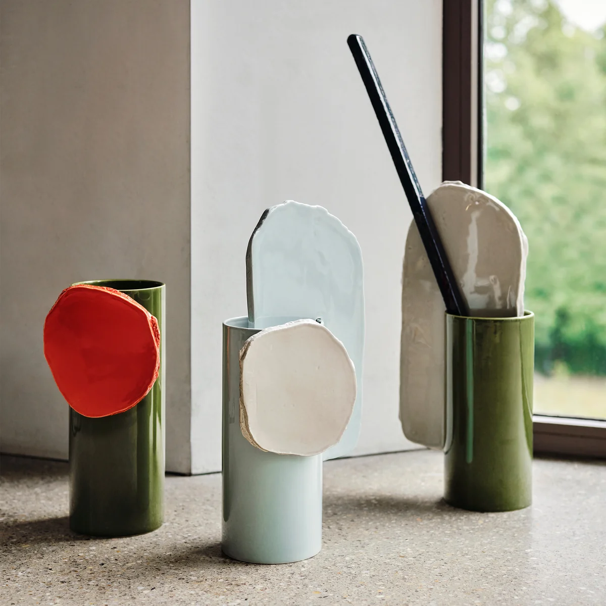 Découpage von Vitra nennt sich eine Serie an Vasen von Ronan & Erwan Bouroullec. Die von Hand gefärbten Vasen sind poetisch-skurrile Kompositionen aus tönernen Zylindern, Platten und Stäben. Die Vasen in den verschiedenen Formen bestehen aus zylinderförmigen Gefäßen mit Platten und Stäben, die auf den Zylindern dekorativ positioniert werden. So werden einzelne Blumen schön in Szene gesetzt. Die Vasen sind aber auch ohne Blumen oder Pflanzen echte Hingucker im Wohnbereich.