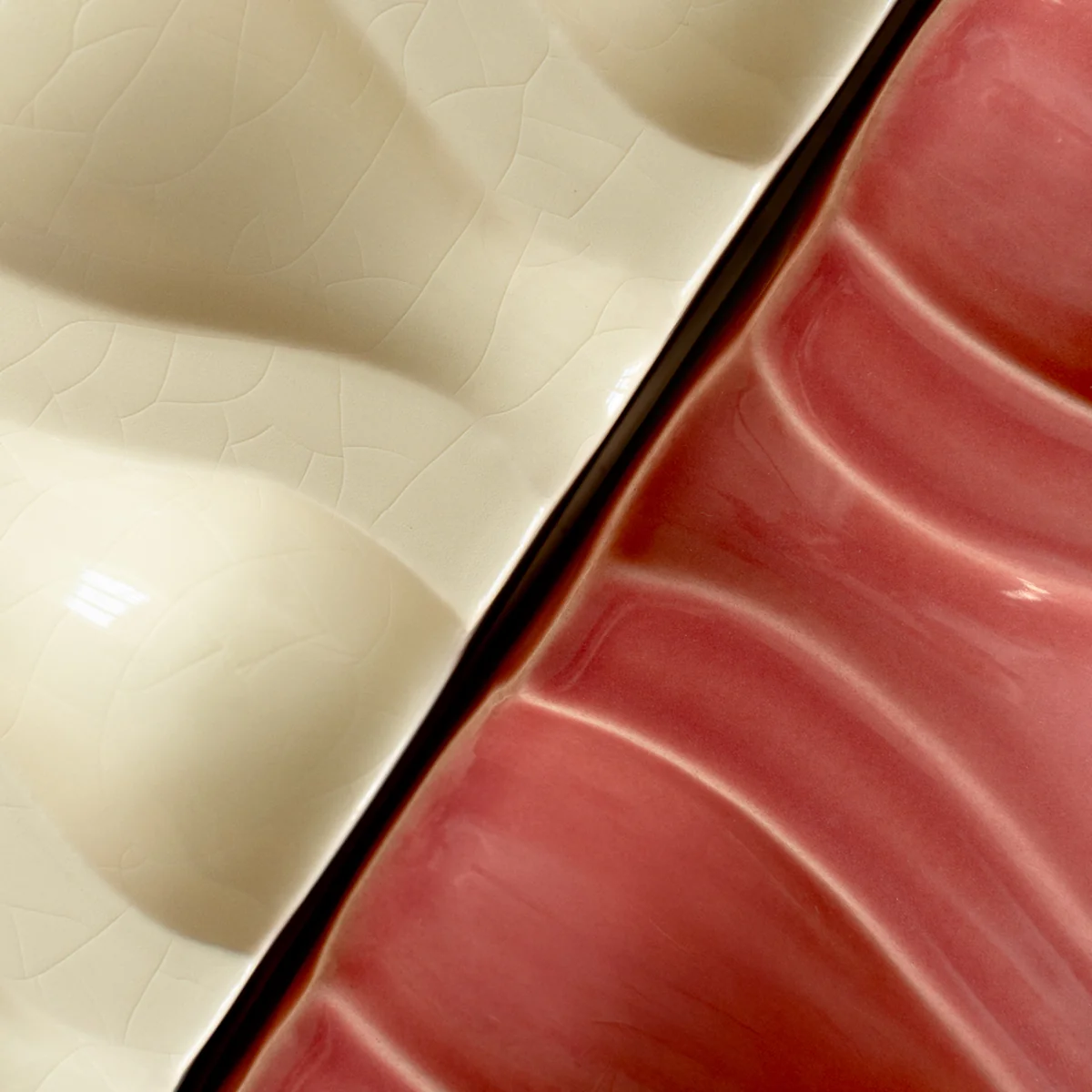 Jedes Stück wird von Hand geformt, hochgebrannt und mit einer sorgfältig ausgewählten Glasur versehen, die Tiefe und Textur betont. Die wellenartigen Linien auf der Oberfläche erinnern an das Verhallen von Echos und erzeugen eine spannende Harmonie zwischen der Beständigkeit des Materials und der Flüchtigkeit des Klangs. Durch kleine Variationen in Glasur und Struktur ist jedes Werk ein Unikat und trägt seine eigene poetische Signatur.