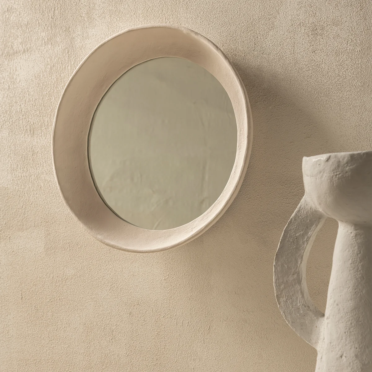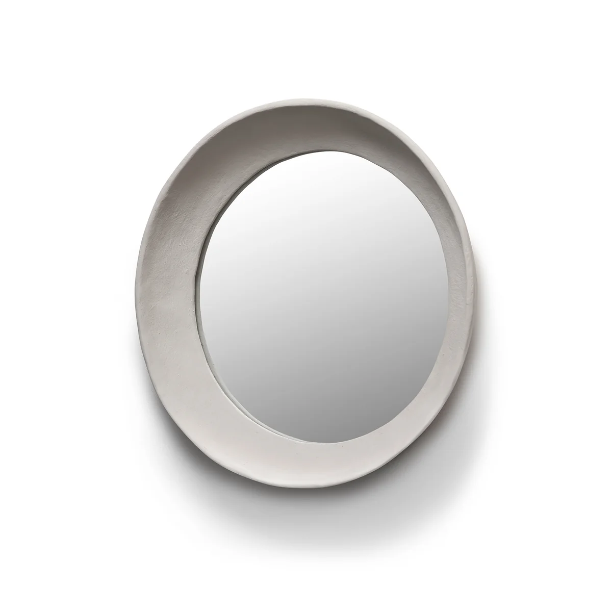 Der Earth Spiegel von Serax verbindet organische Linien mit einer authentischen, handwerklichen Ausstrahlung. Der unregelmäßig geformte Rahmen besteht aus Papiermaché und spiegelt die Handschrift nachhaltiger Materialwahl und individueller Fertigung wider. Jeder Spiegel ist dadurch ein Unikat mit leicht variierenden Oberflächen und Strukturen. Sein natürlicher Off-White-Ton und die sanfte, unregelmäßige Form machen den Earth Spiegel zu einem besonderen Akzent in modernen, minimalistischen oder naturnahen Einrichtungen.